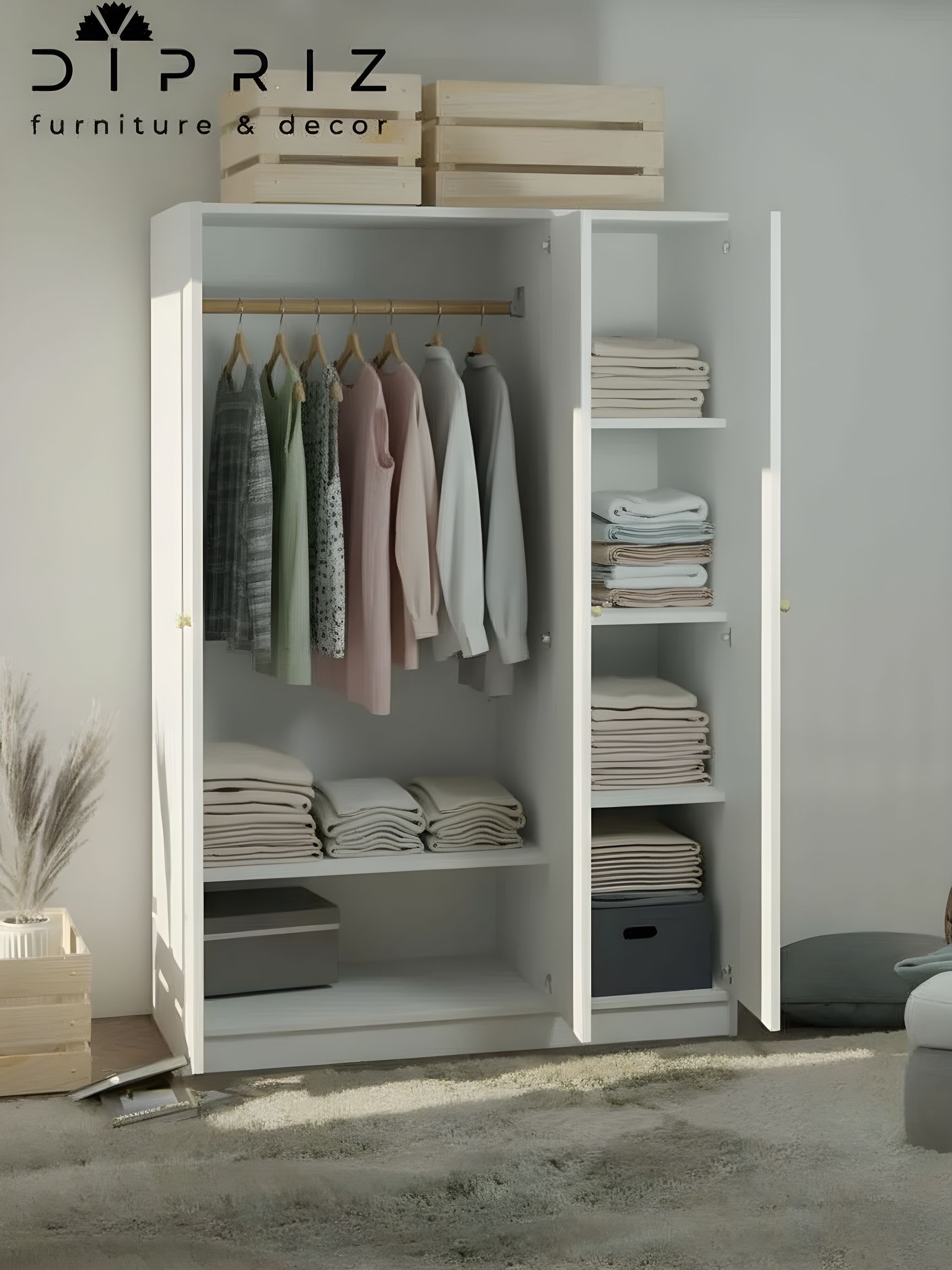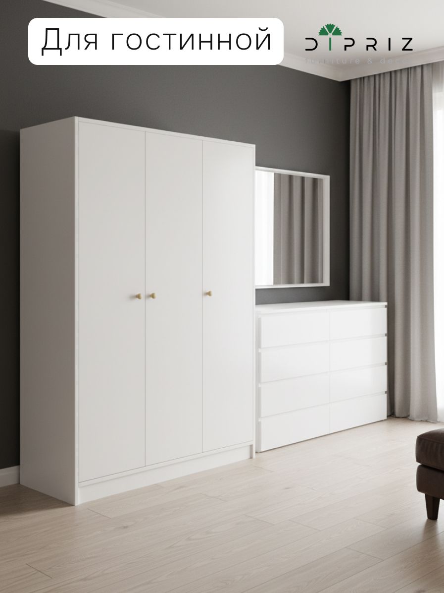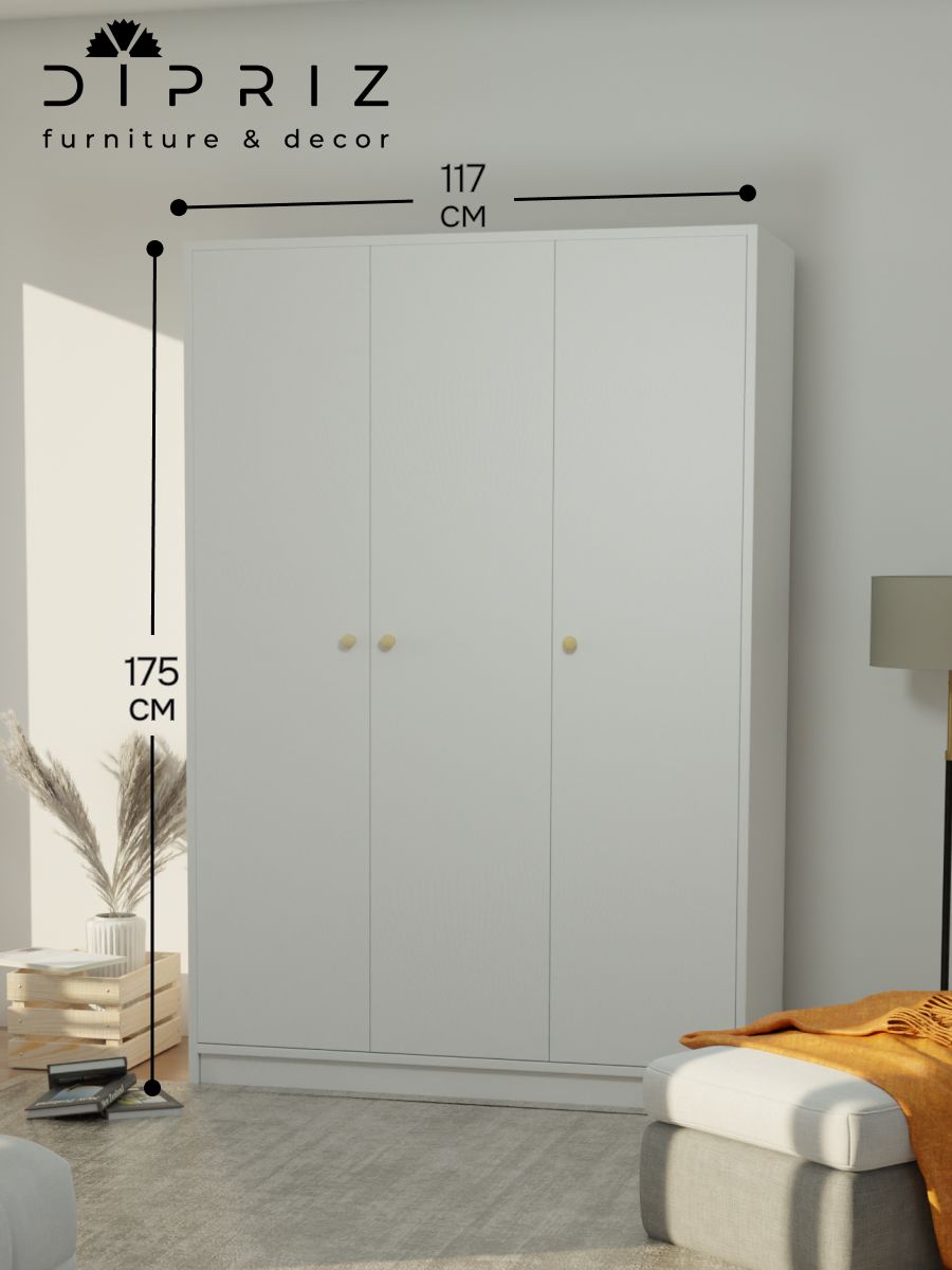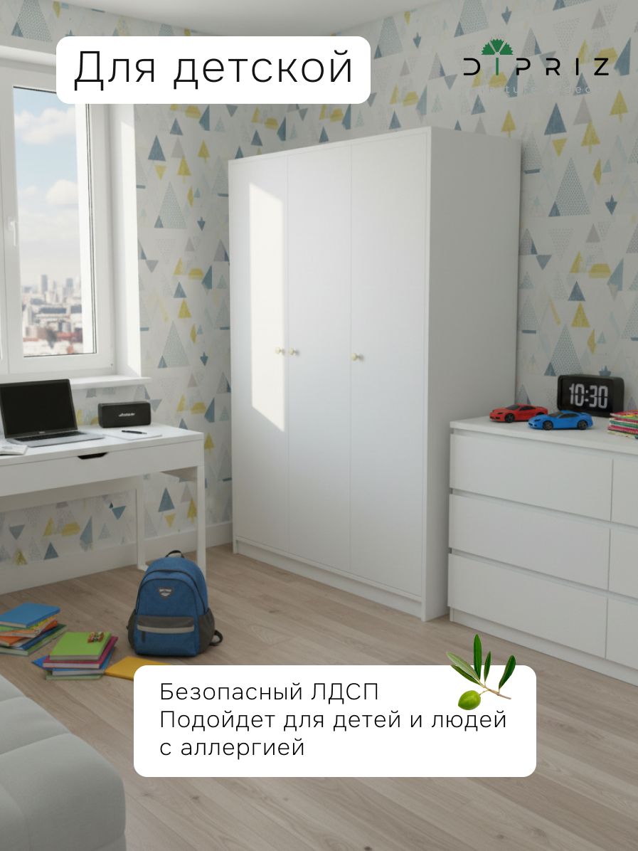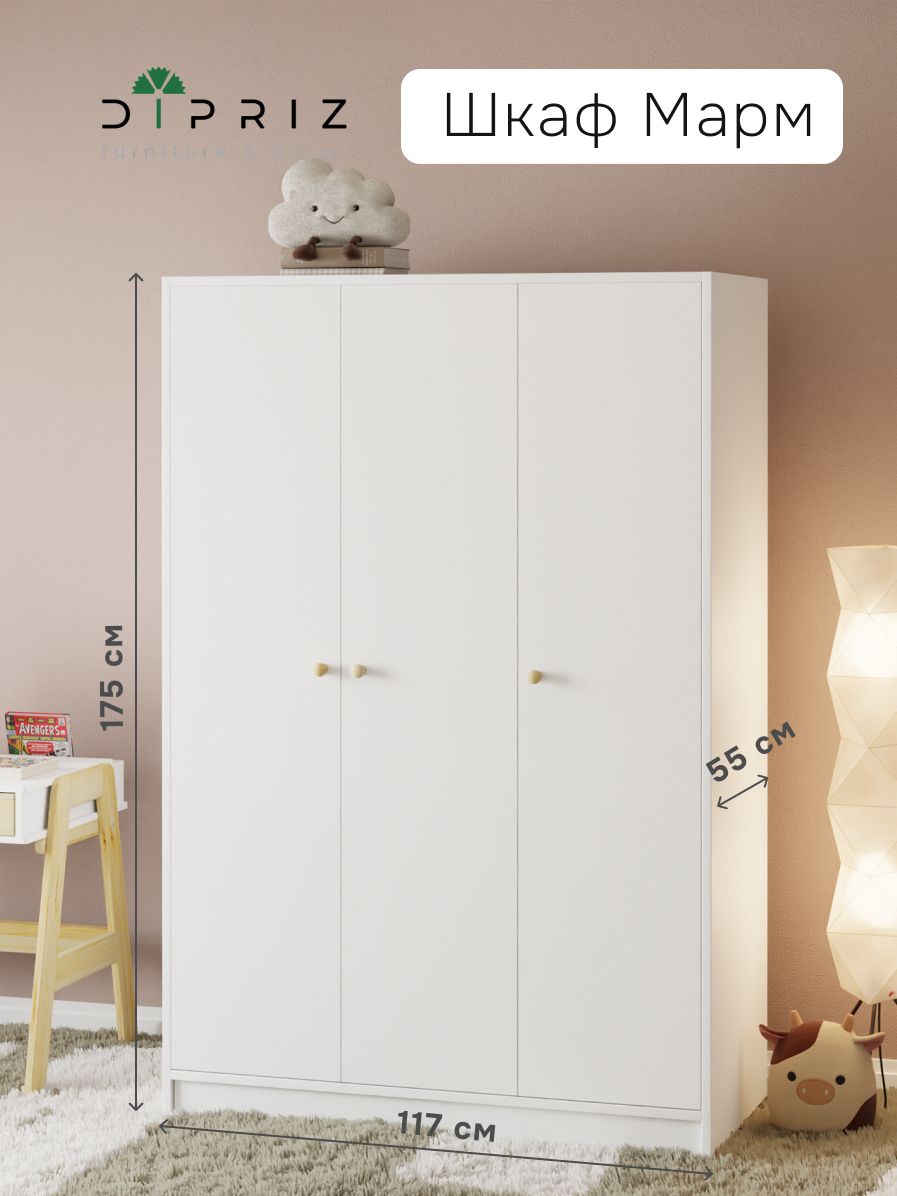 Распашной белый шкаф для одежды Марм 117х55х175 см – отличное дополнение скандинавского интерьера. Трехдверный шкаф со штангой и вместительными полками создаст порядок в любой комнате, будь то прихожая, спальня, гостиная, ванная или детская комната.