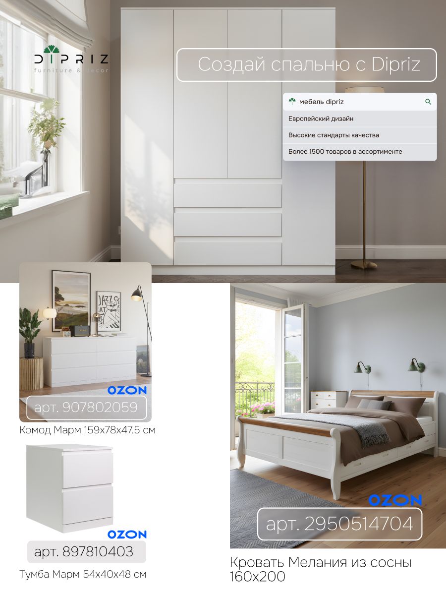 Белый шкаф Марм – это современное сочетание стиля и функциональности. Минималистичный дизайн и просторное наполнение делают его идеальным выбором для хранения вещей и создания стильного интерьера. Выбирая стильный и экологичный шкаф для одежды Марм, вы делаете ответственный выбор в пользу природы и создаете функциональное и эстетичное пространство для хранения вещей в вашем доме. Подчеркните уникальность и создайте свое уютное домашнее пространство с нашей мебелью. Мы заботимся о Вашем удобстве!