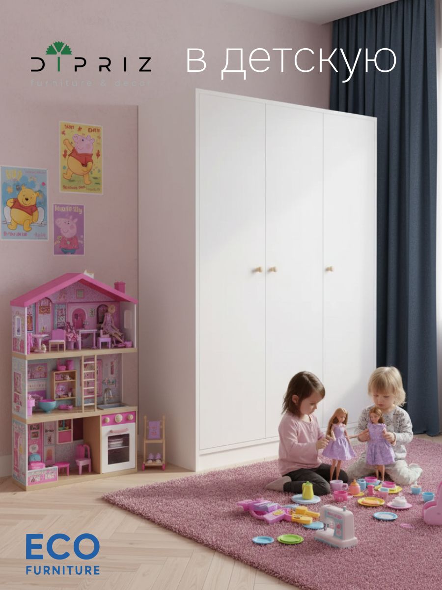Трехдверный распашной шкаф Марм для вещей изготовлен белорусским производителем Диприз из качественных и экологически безопасных материалов, что позволяет использовать его в детской комнате.