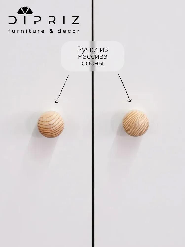 В шкафу есть 4 просторные полки и вместительная ниша для обуви. Распашные двери шкафа установлены на петлях с доводчиком от производителя , а также в конструкции предусмотрены стопоры для дверей. Это обеспечивает плавное и безопасное использование дверей. Комплектация шкафа включает деревянные ручки из массива сосны.
