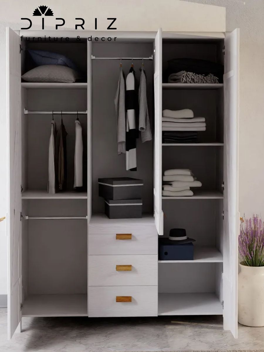 Шкаф для одежды Мадейра от белорусского производителя Dipriz - отличное дополнение современного интерьера. Трехдверный распашной шкаф с 3 ящиками создаст порядок в любой комнате, будь то прихожая, спальня, гостиная, ванная или детская комната.
