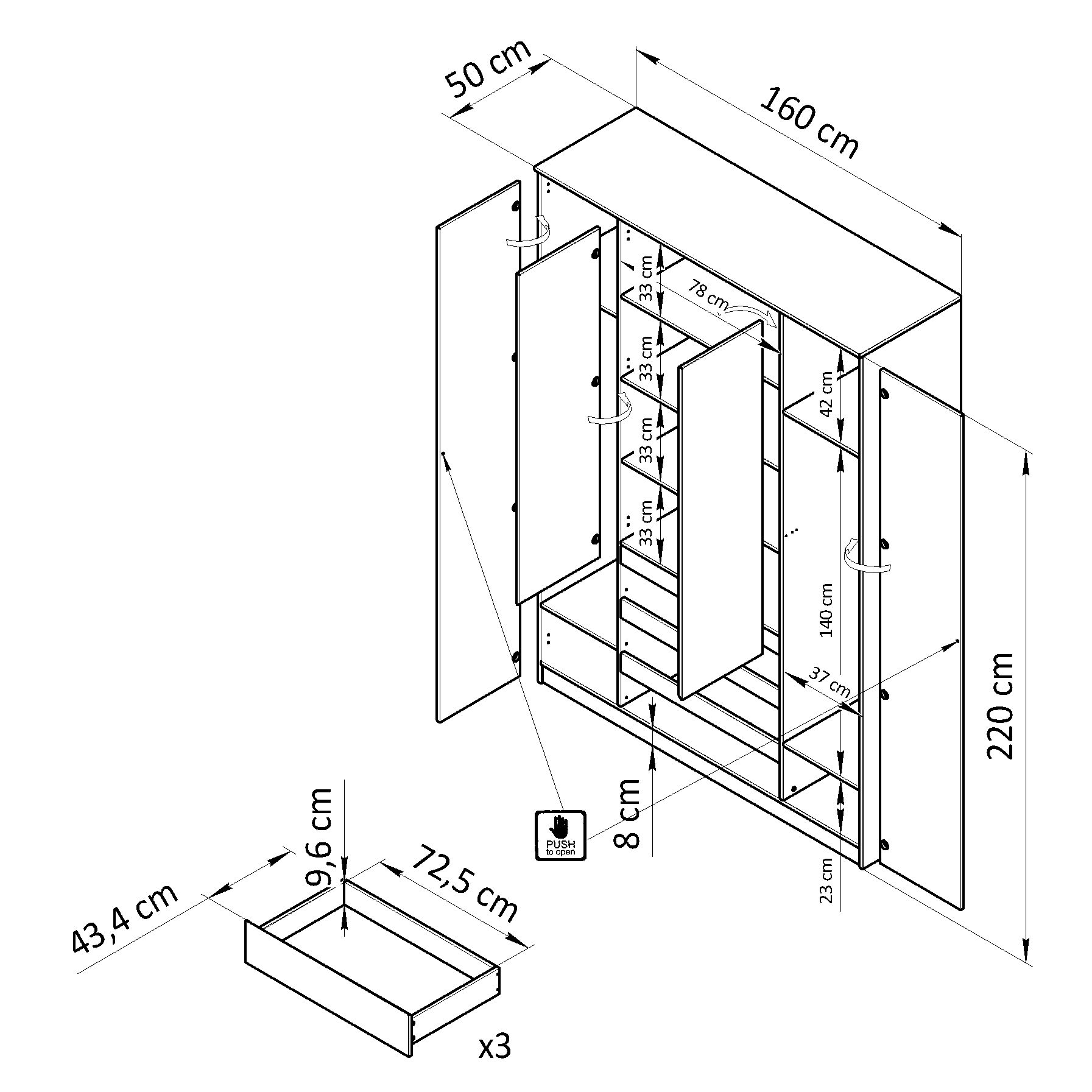 Универсальное решение для любого помещения: дачи, квартиры или рабочего кабинета. Съемные элементы и нажимной механизм дверей добавляют комфорта в использовании.