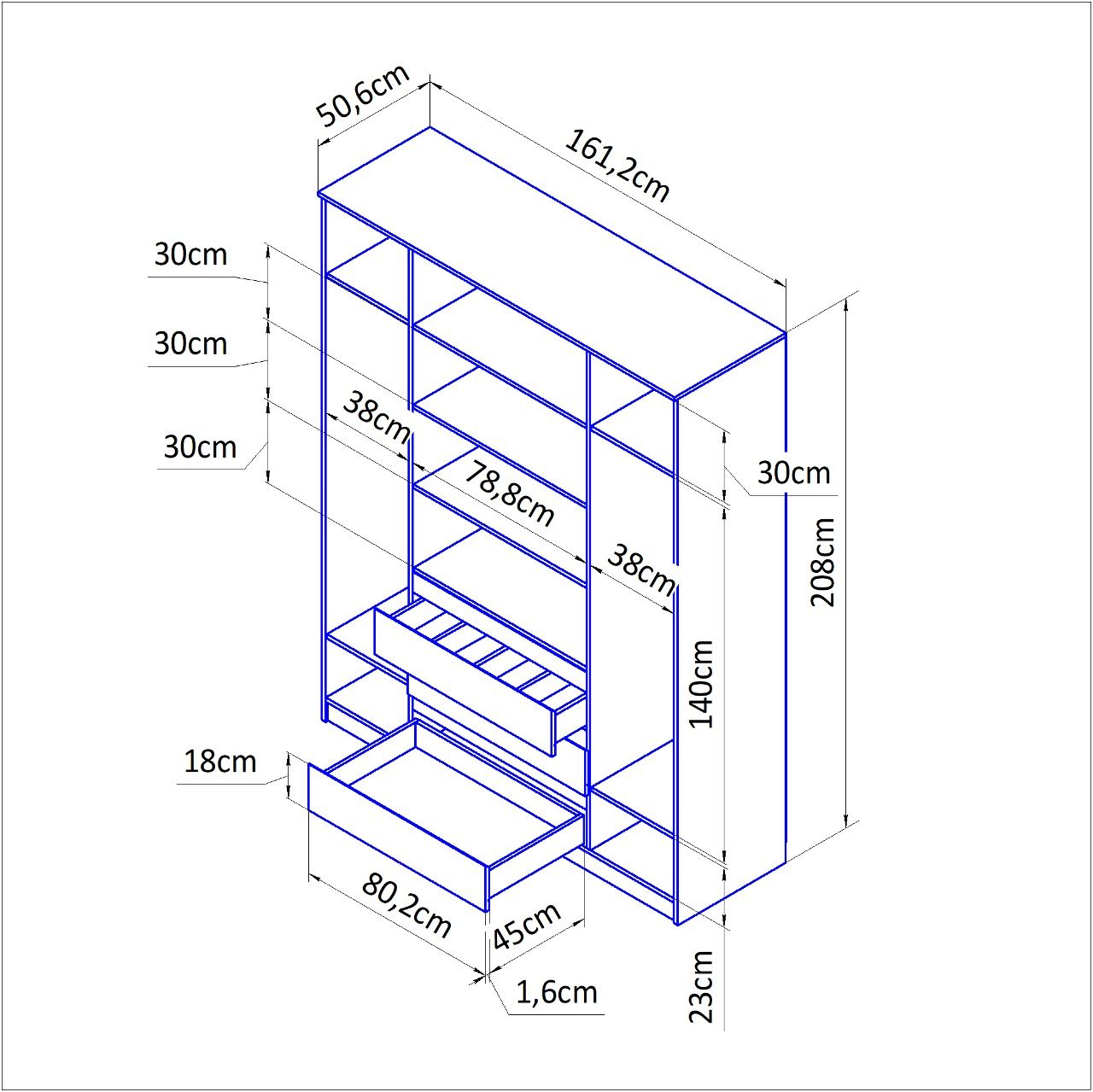 Размеры шкафа в собранном виде (Ширина х Высота х Глубина, см): 161.2х50.6х208 см, что позволит удобно хранить как домашнюю одежду и текстиль, так и верхнюю одежду с обувью, не беспокоясь о порядке. Особенностью изделия являются распашные двери и ящики без видимых ручек, которые открываются легким движением руки. Полки с регулировкой высоты в 3 положениях позволят использовать внутренне пространство шкафа по Вашему желанию, а максимальная допустимая нагрузка на полку составляет 5 кг.
