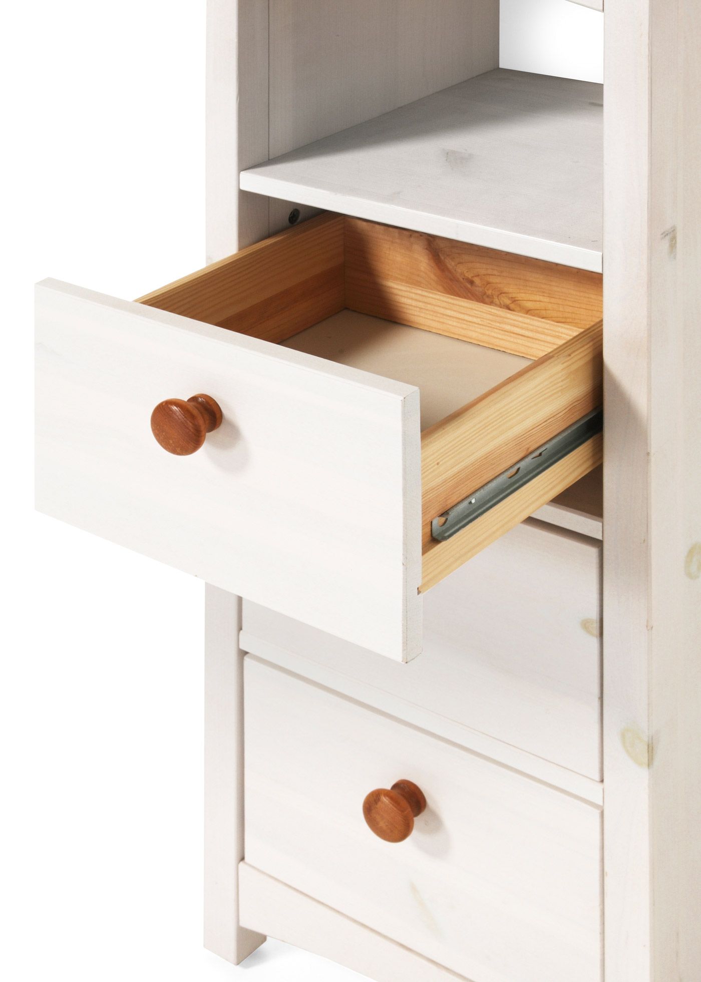 Шкаф Паула изготовлен из натурального дерева от белорусского производителя мебели "Диприз", с использованием экологически чистых отделочных материалов. В шкафу имеется 3 ящика и за распашной дверью находятся 2 полки. Дизайн изделия хорошо подойдет для помещений с многими стилями интерьера, а большое количество ящиков создаст достаточно места для хранения самых различных вещей. Это универсальная модель, которая пригодится в любом доме. Натуральная текстура дерева создаст в комнате ощущение свежести и тепла. Конструкция прочная, устойчивая и выдерживает значительные нагрузки. Качественные материалы гарантируют продолжительный срок службы. Собрать изделие легко в домашних условиях.
