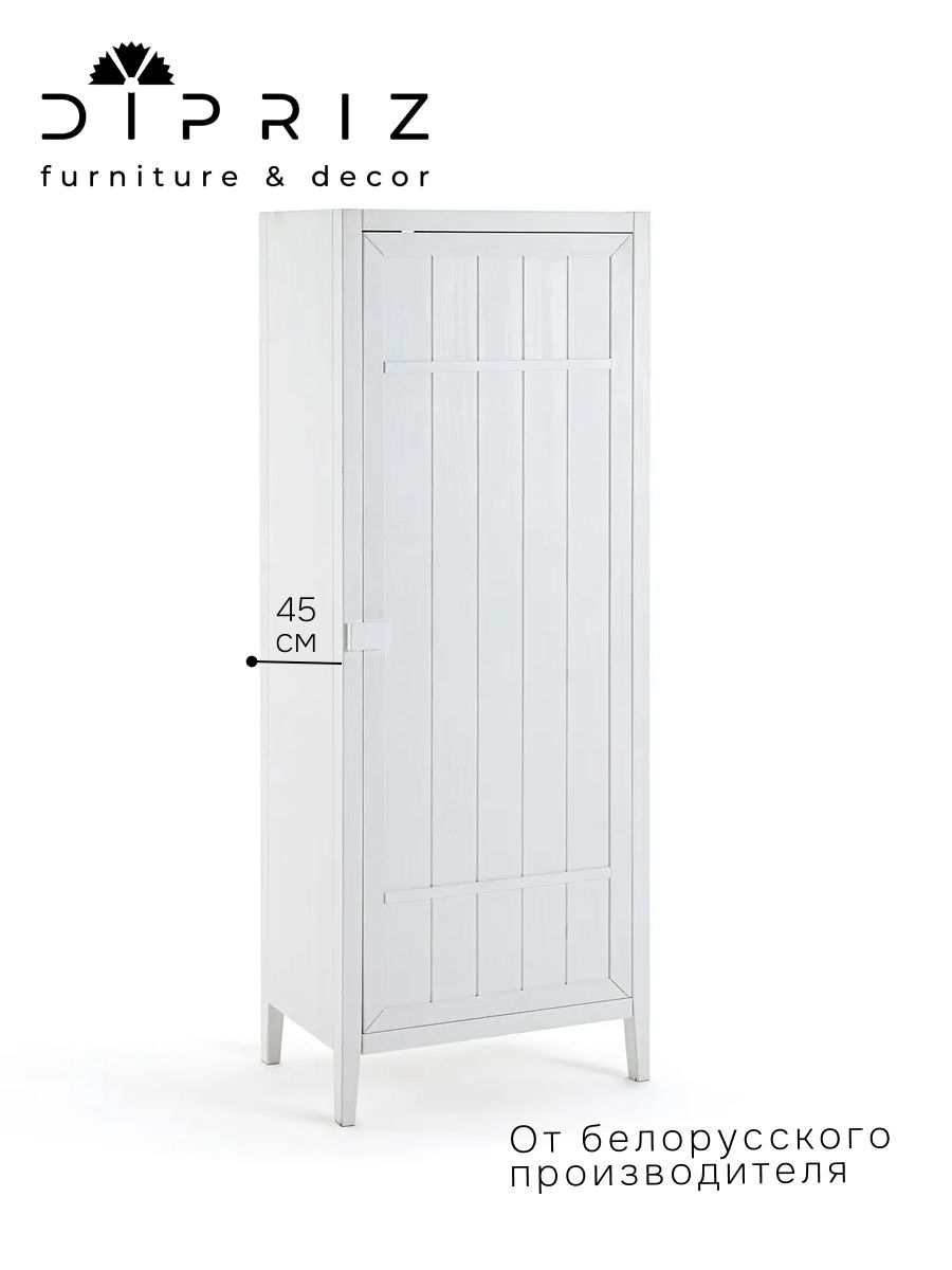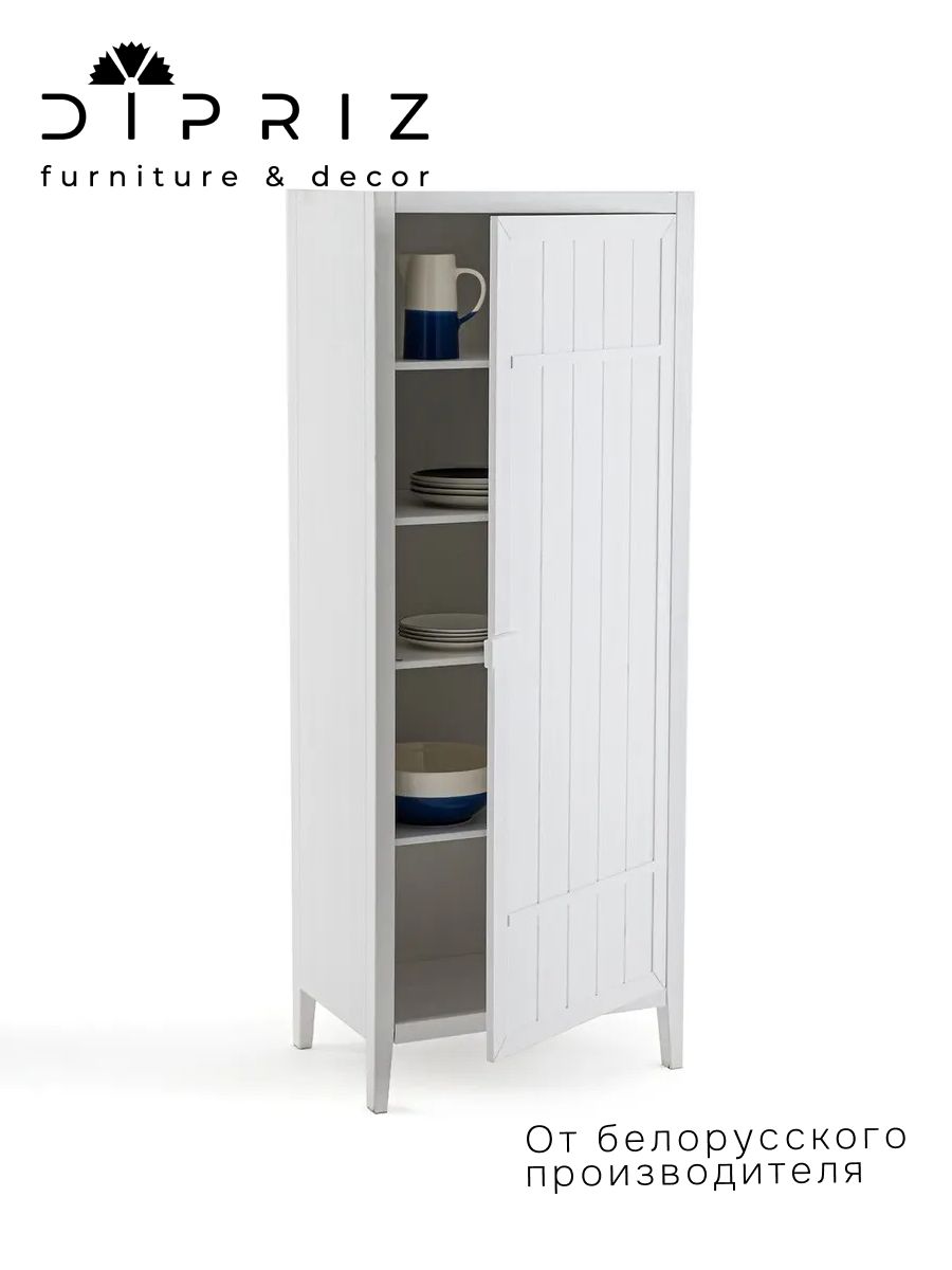 Распашная дверь с декоративным фасадом подчеркнет ваш индивидуальный стиль и придаст интерьеру неповторимый шарм. Дверная ручка в стиле прованс добавляет изысканности и завершают образ шкафа. Конструкция распашного шкафа на ножках включает в себя 1 распашную дверь с декоративным фасадом и 4 полки (3 из которых можно снять). Удобная конструкция шкафа предполагает, что двери могут устанавливаться с любой удобной стороны, что обеспечит легкое встраивание шкафа в интерьер. Петли шкафа оснащены плавным закрыванием. Максимальная допустимая нагрузка на полку составляет до 5 кг и позволяет хранить любые предметы.