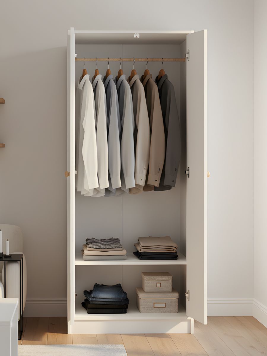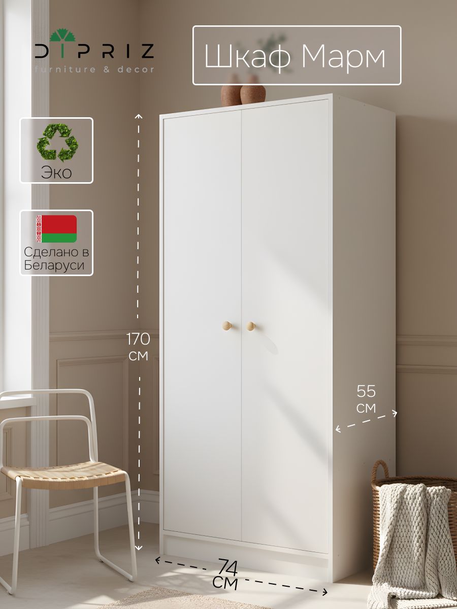 Шкаф для одежды Мальм - отличное дополнение скандинавского интерьера. Двухдверный шкаф распашной со штангой и вместительной полкой создаст порядок в любой комнате, будь то прихожая, спальня, гостиная, ванная или детская комната.