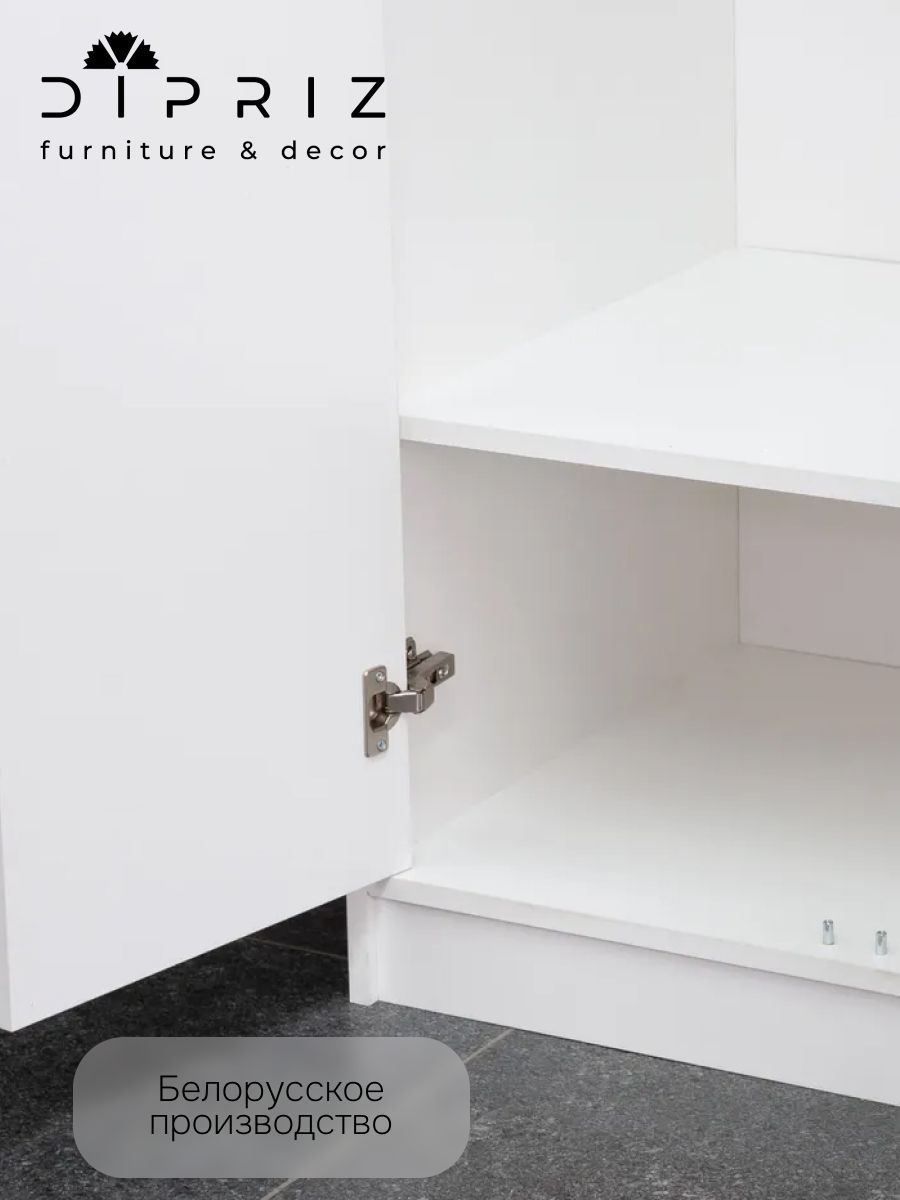 Шкаф для одежды распашной изготовлен белорусским производителем "Диприз" из высококачественного ЛДСП. При изготовлении шкафа использовалось только безопасное для человека ЛДСП толщиной 16 мм в соответствии с европейскими нормами классов содержания формальдегида (не более 10 мг на 100 г). Имеет нежный белый цвет, поэтому мебель всегда будет придавать комнате приятный и светлый внешний вид. Для задней стенки использовалось ДВП белого цвета толщиной 3,2 мм. Шкаф выполнен на высокоточном оборудовании, все кромки изделия обработаны промышленным методом на современных станках, что обеспечивает ее плотное прилегание и прочность древесного слоя при контакте с влагой, устойчивость к влажности и деформации.