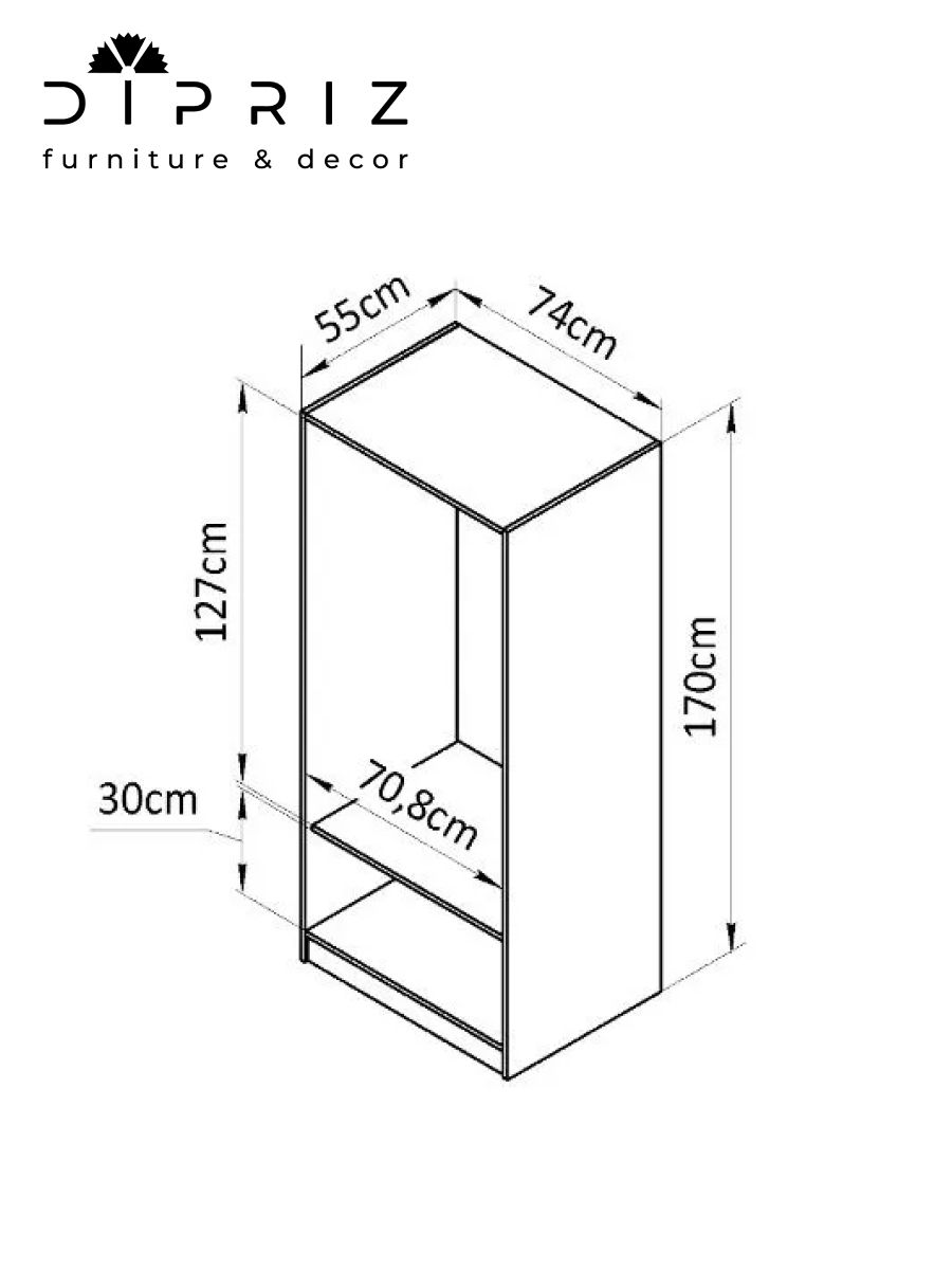 Размеры шкафа в собранном виде (Высота х Ширина х Глубина, см): 170х74х55 см, что позволит удобно хранить свои вещи не беспокоясь о порядке. Изделие включает 2 распашные двери с ручками из массива сосны (диаметр 34 мм), которые закреплены на петлях с доводчиком и стопором, что обеспечивает плавное и безопасное использование дверей. Штанга с регулировкой высоты в 5 положениях позволят использовать внутренне пространство шкафа по Вашему желанию, а максимальная допустимая нагрузка на полку составляет до 10 кг. Допустимо крепление шкафа к стене при помощи уголка для большей устойчивости (поставляется в комплекте).