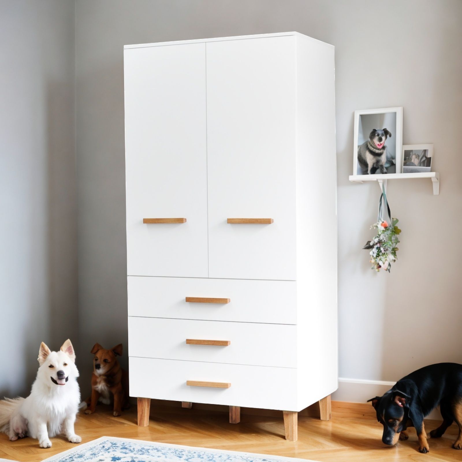 Этот шкаф станет неотъемлемой частью интерьера благодаря своему изысканному дизайну и вниманию к деталям. Оттенки белого и натурального дерева, характерные для коллекции, придают ему универсальность и легкость в сочетании с разными стилями интерьера.
