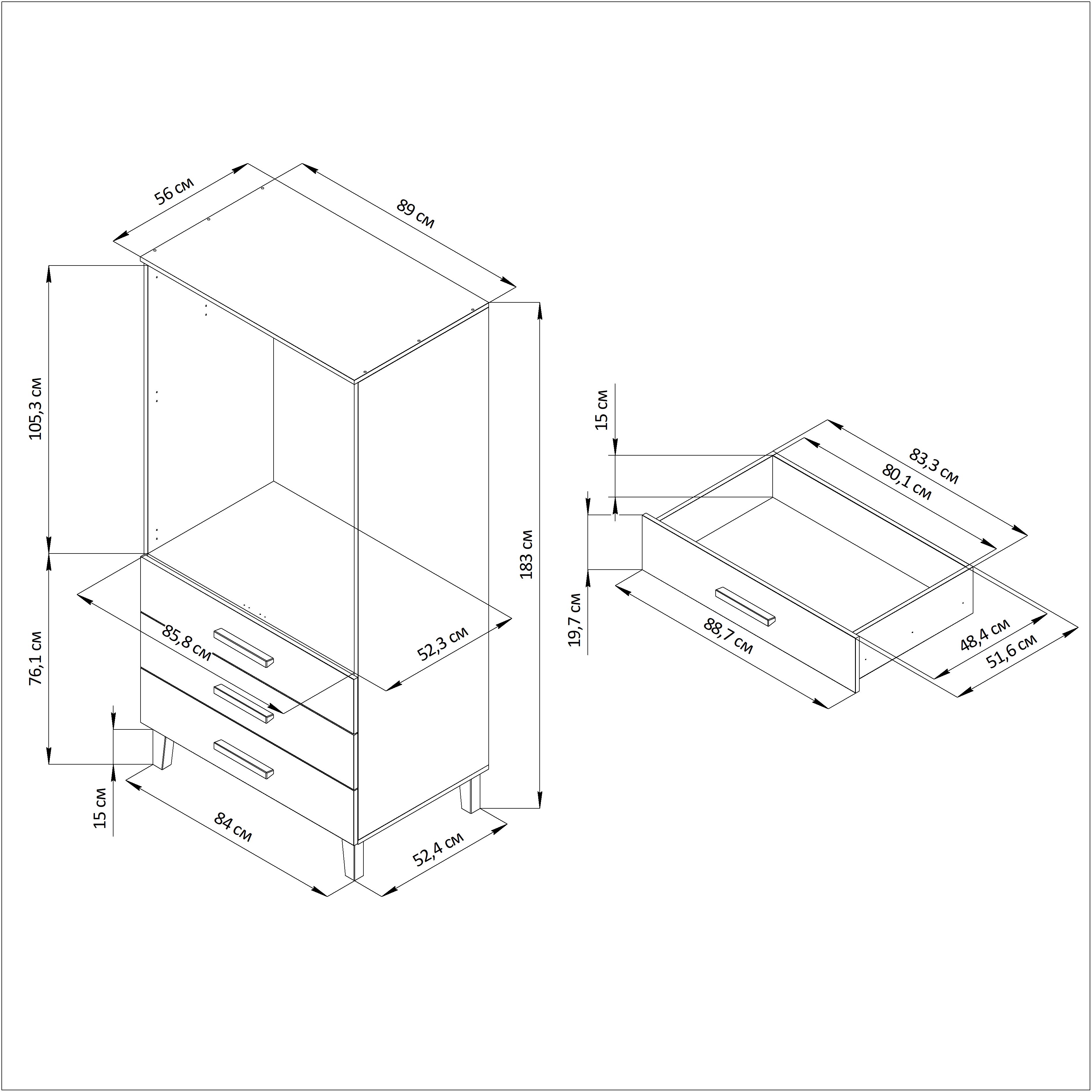 В комплекте со шкафом имеются 3 ящика, максимальная нагрузка на которые составляет 5 кг.