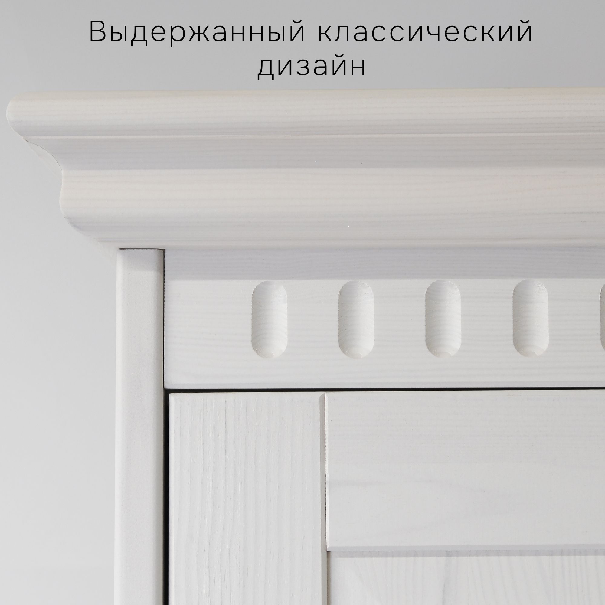 Ключевые преимущества: ✅ Натуральный массив сосны: Экологичный, прочный и долговечный материал для здорового микроклимата. ✅ Практичная конструкция с зеркалом: Три распашные секции, две регулируемые полки, штанга для одежды, выдвижной ящик и встроенное зеркало на одной из дверей для вашего удобства. ✅ Экологичное покрытие: Обработан влагостойким белым матовым воском, который защищает дерево и подчеркивает его природную текстуру. ✅ Качественная фурнитура: Петли с доводчиком для плавного закрывания, металлические ручки. Возможность крепления к стене для безопасности. ✅ Простая сборка: Поставляется в разобранном виде с подробной инструкцией и всем крепежом. ✅ Гарантия 24 месяца: Прямые поставки от производителя с официальной гарантией.
