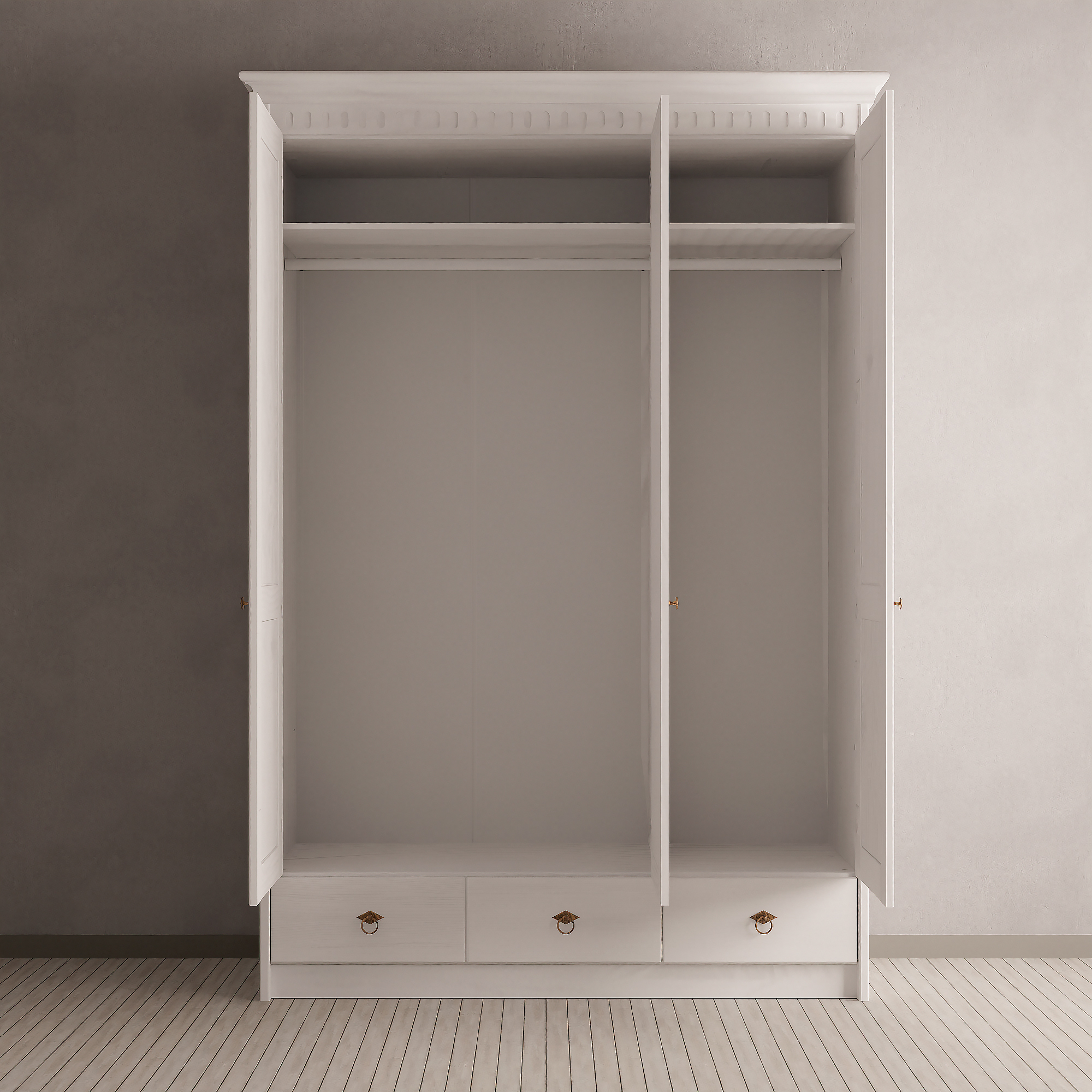 Шкаф трехдверный Боцен из массива сосны в разобранном виде