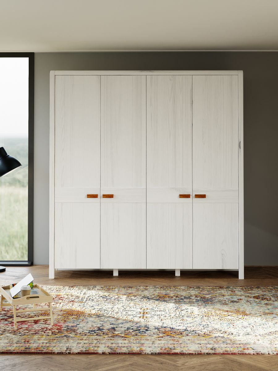 Шкаф для одежды Мадейра от белорусского производителя Dipriz — стильное и практичное решение для современного интерьера. Четырехдверный распашной шкаф создаст порядок в прихожей, спальне, гостиной или детской комнате. Шкаф выполнен в белом цвете (отделка «белый воск 1620») и идеально подходит для хранения одежды, белья или аксессуаров.