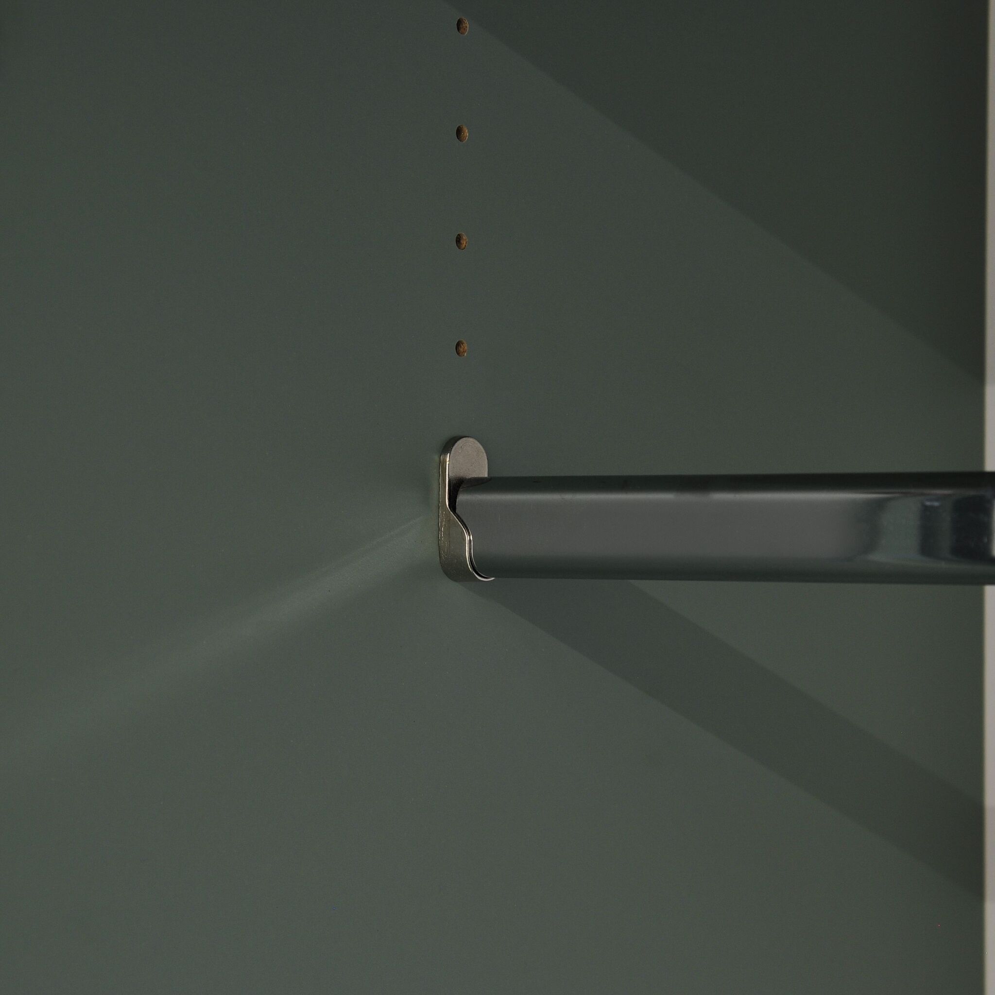 Особенностью шкафа является наличие металлической штанги для одежды с регулировкой по высоте в 5 положениях. Благодаря этому вы сами сможете изменять внутреннее наполнение шкафа, оставляя места для одежды на штанге или для организация пространства под ней.