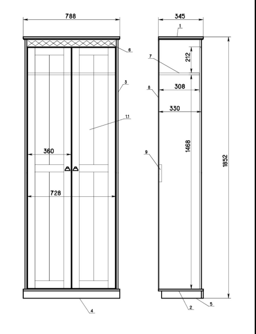 Габариты шкафа (В×Ш×Г): 185х78,8х34,5 см — оптимальное соотношение вместительности и компактности