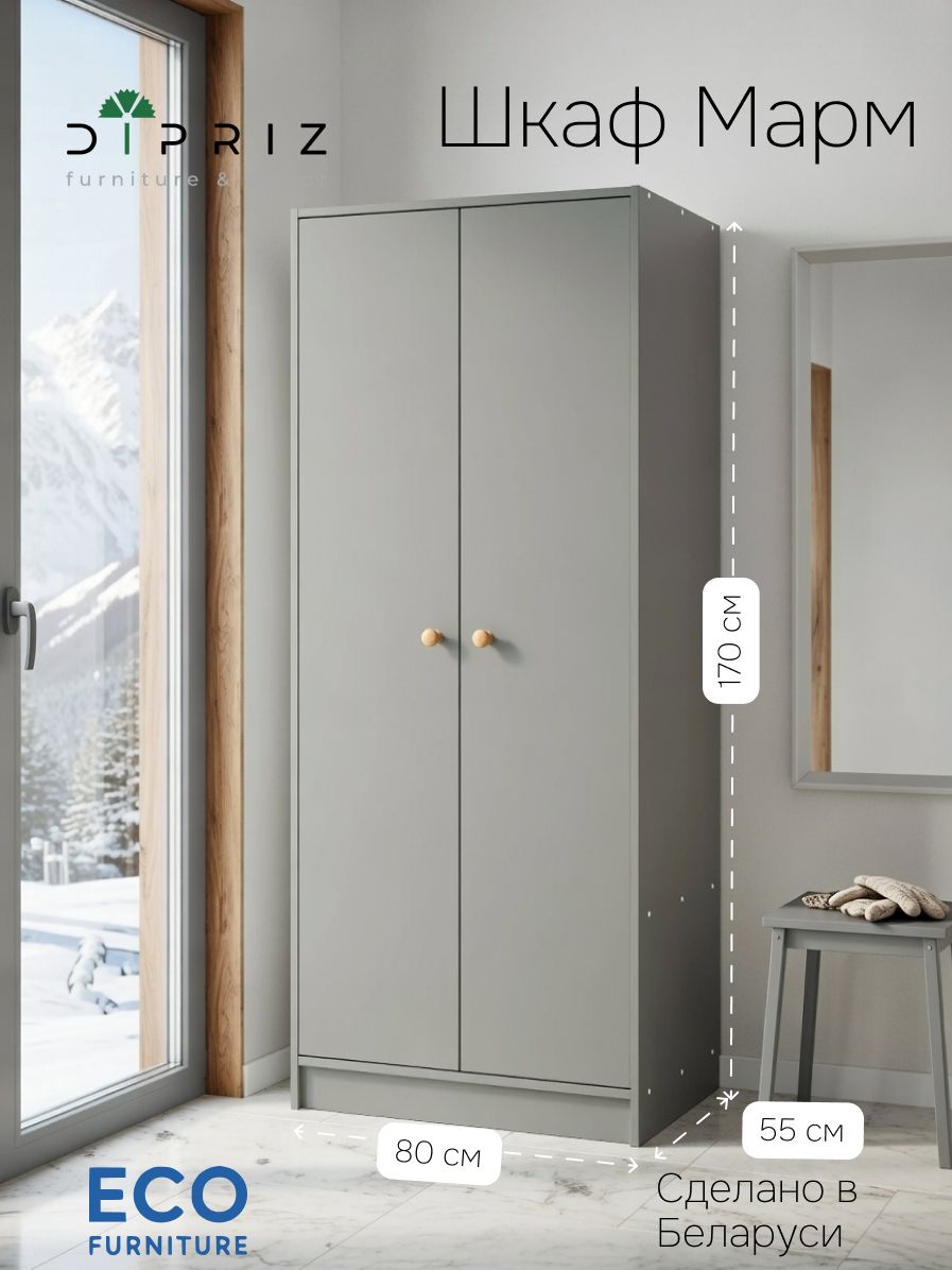 Шкаф для одежды Марм серого цвета — это простой и надежный помощник, который поможет навести идеальный порядок в вашем доме. Представьте: открываете дверцы — и все вещи на своих местах, ничего не валяется, комната выглядит светлой и уютной. Двухдверный распашной шкаф с деревянной штангой из массива сосны и полкой от белорусского производителя Dipriz создан именно для этого — хранить одежду, обувь или игрушки так, чтобы было удобно и красиво.