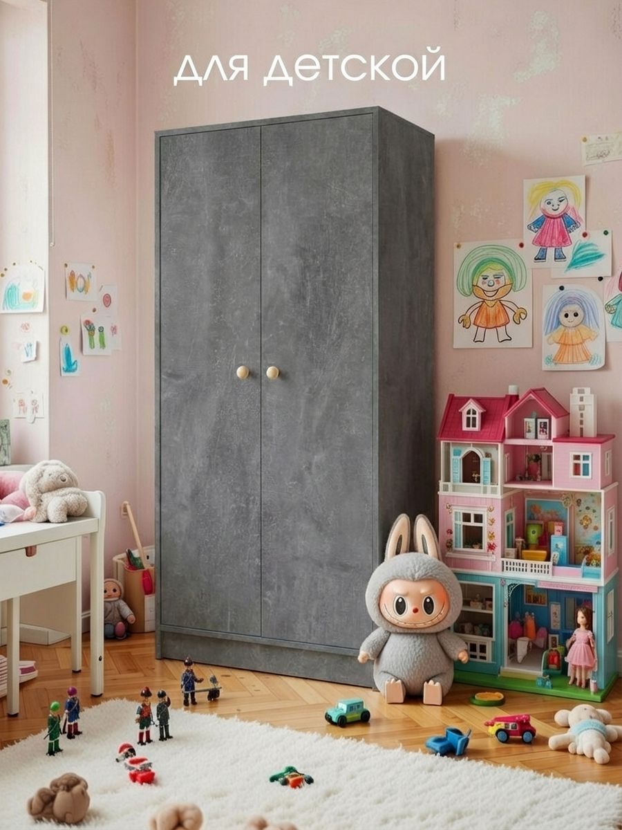 Цвет - серый бетон, представляет текстуру смешения серого с белым, что подойдет для комнат в приглушенных тонах. Шкаф выполнен на высокоточном оборудовании, все кромки изделия обработаны аккуратно, промышленным методом на современных станках, что обеспечивает ее плотное прилегание и прочность древесного слоя. Для задней стенки использовалось ДВП белого цвета.