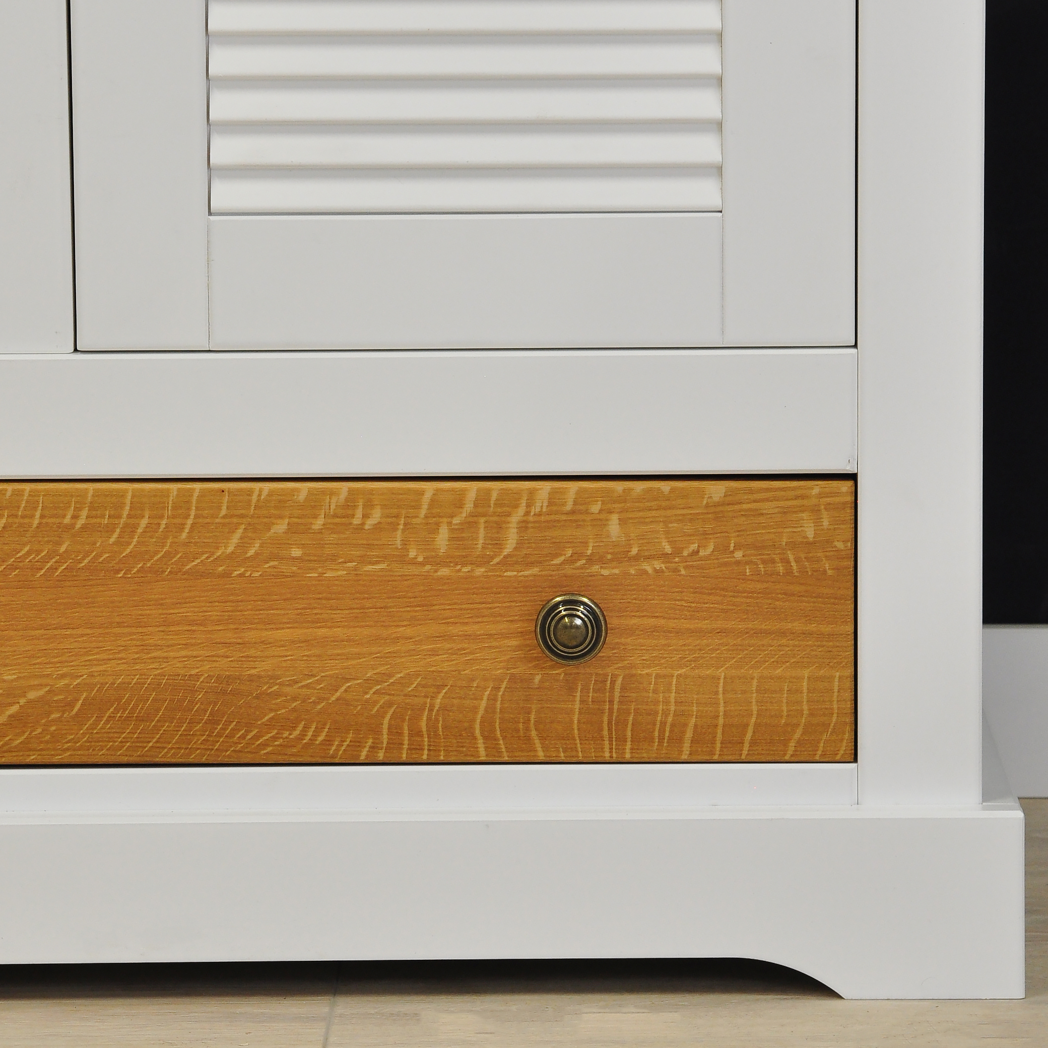 Материал: корпус из МДФ, фасады из дуба и МДФ, задние стенки и дно ящика из ДВП.