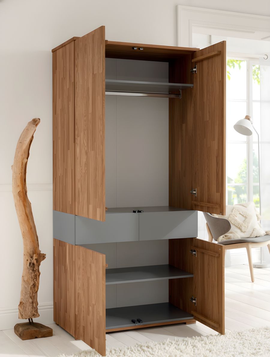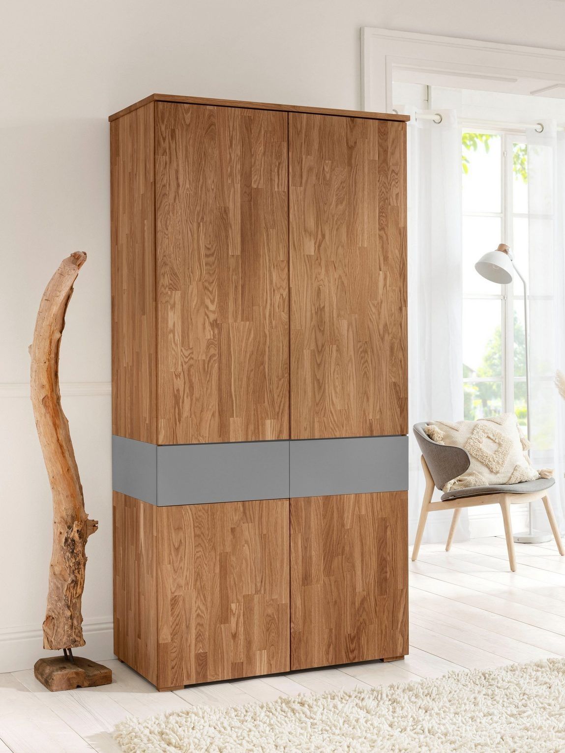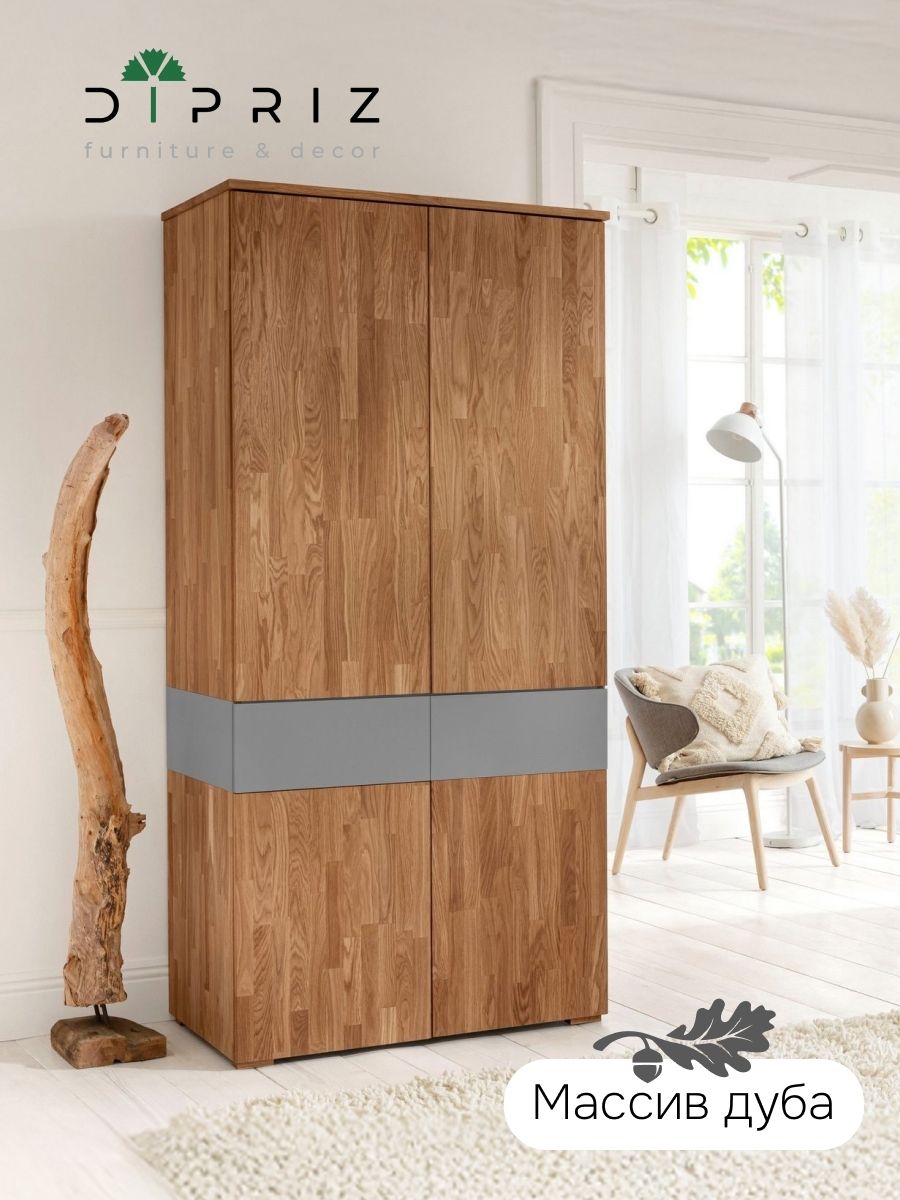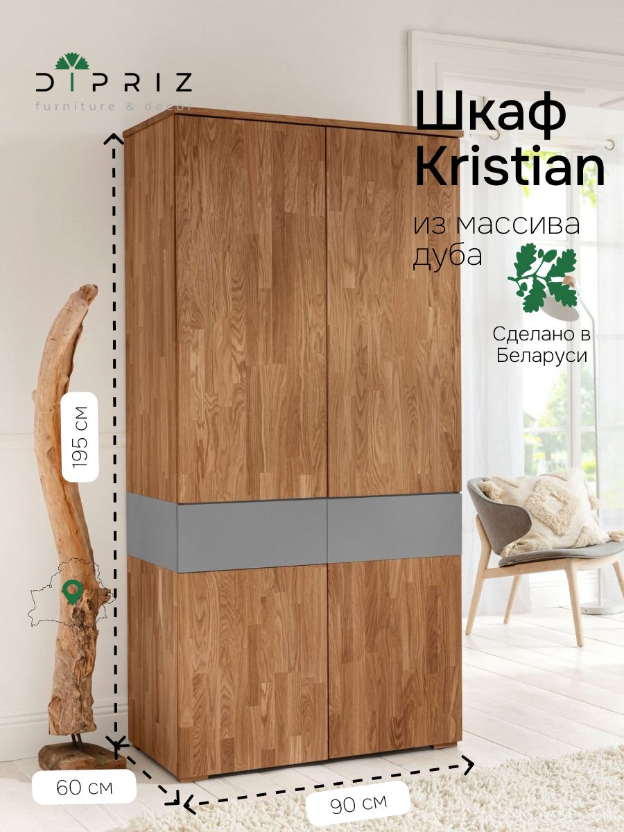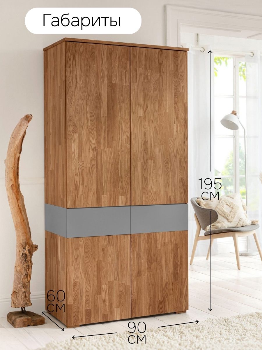 # Распашной шкаф «Кристиан» из массива дуба с серыми акцентами