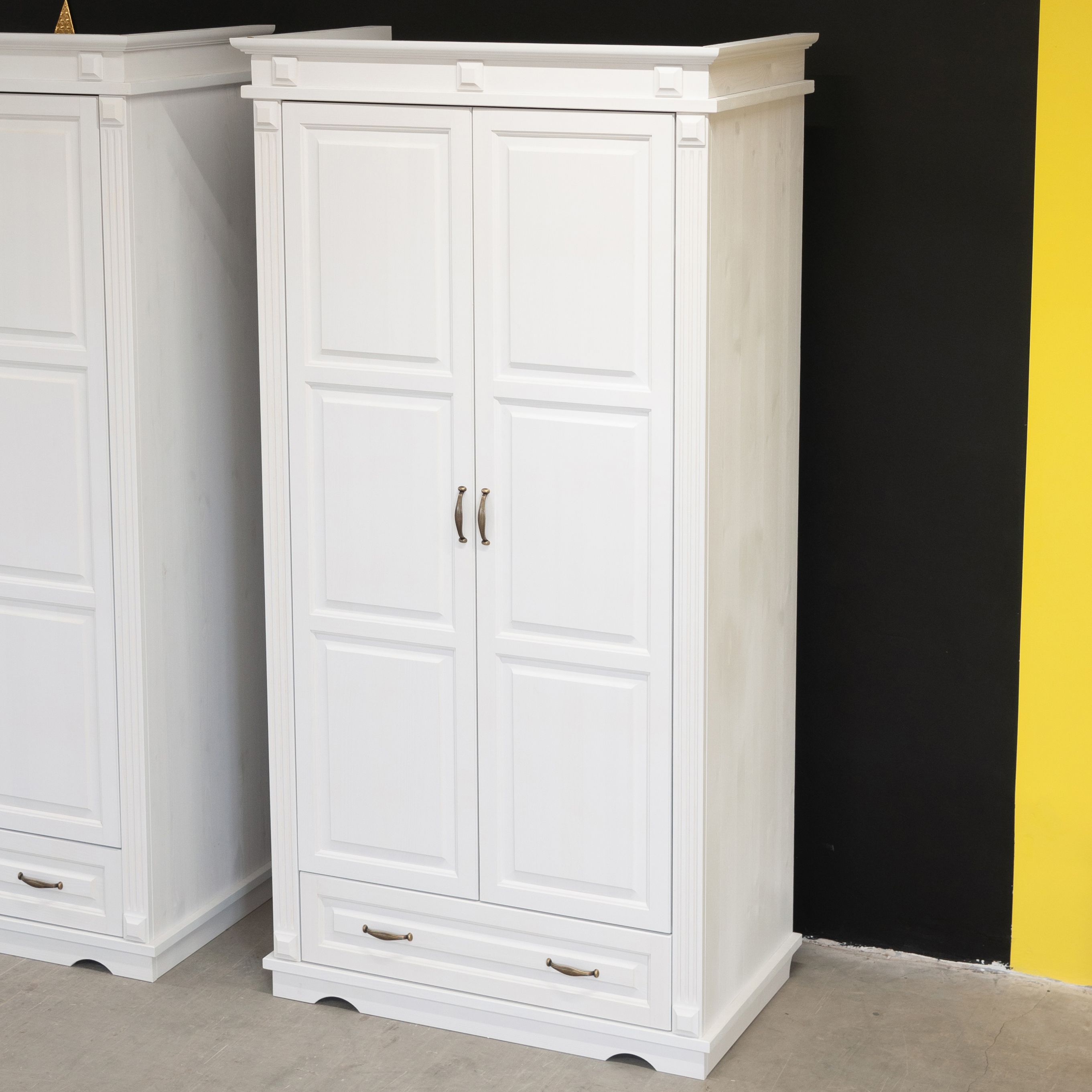 Выбирайте качество, изысканность и функциональность с белым шкафом для одежды Харви из массива сосны!