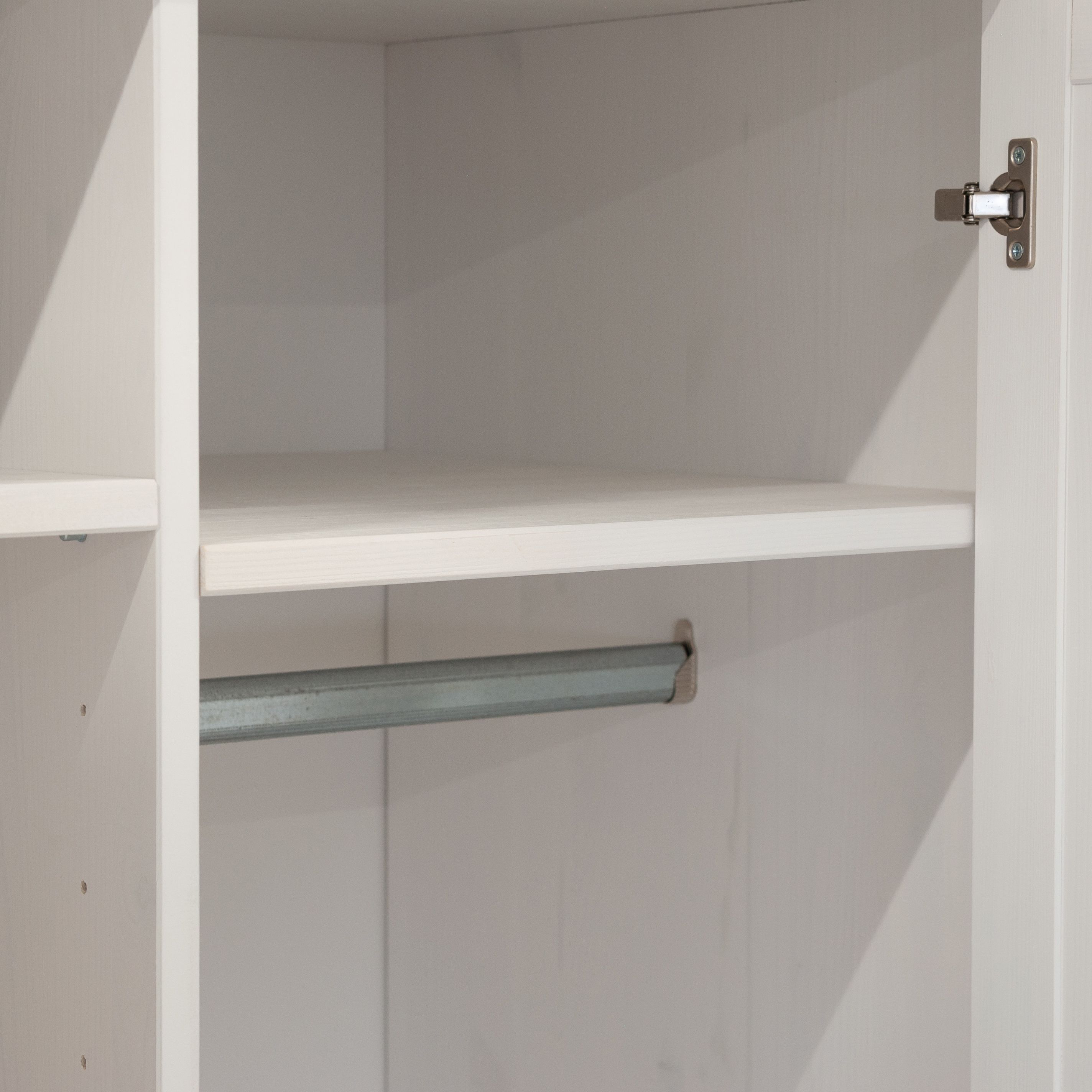 Натуральный массив дерева прекрасно подчеркивается экологичным защитным белым укрывистым воском на водной основе, сохраняя хвойный аромат и полезные свойства сосны. Это обеспечивает не только стойкость к внешним воздействиям, но и подчеркивает естественную красоту массива дерева. Белый распашной шкаф для одежды и вещей с ящиком Харви придаст вашему помещению неповторимую атмосферу комфорта и уюта.