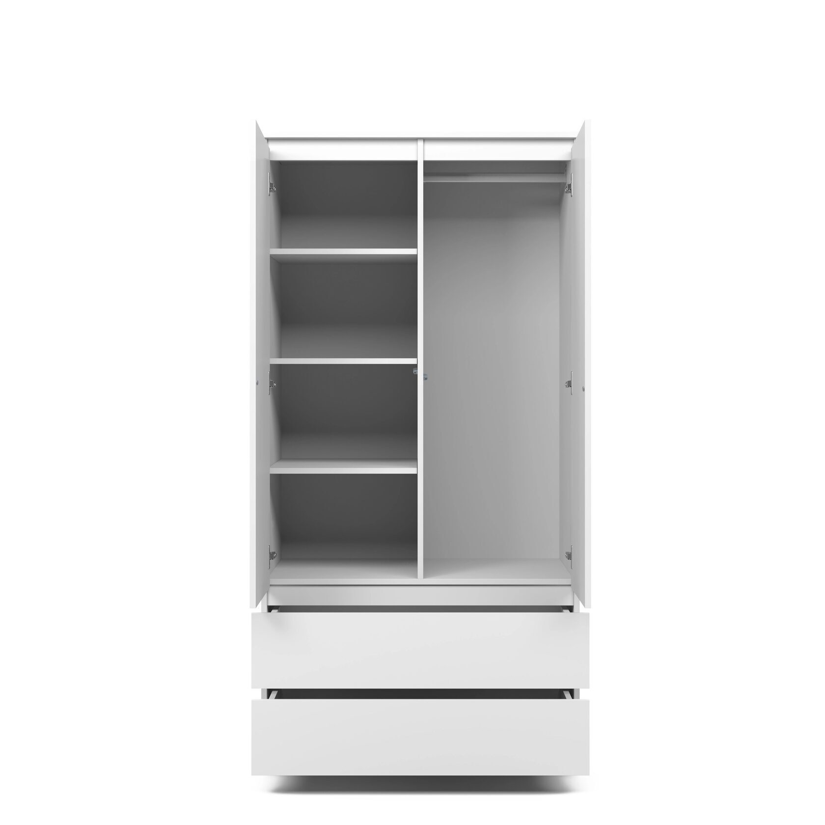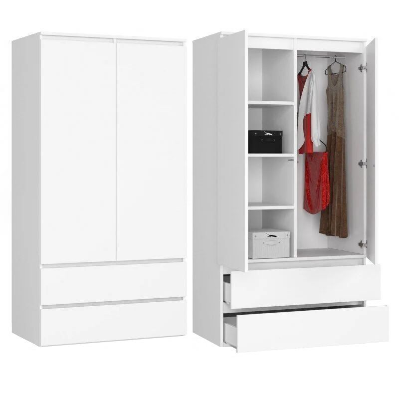 Шкаф для одежды Мальм от белорусского производителя Dipriz - отличное дополнение скандинавского интерьера. Двухдверный распашной шкаф с 2 ящиками создаст порядок в любой комнате, будь то прихожая, спальня, гостиная, ванная или детская комната. Конструкция шкафа включает в себя 3 полки (с регулировкой высоты), 2 выдвижных ящика (шариковые направляющие), металлическую штангу для одежды и 2 двери с нажимной системой "Push to open". Внутреннее пространство белого шкафа можно использовать для хранения вещей одного типа или тематически по назначению. Например, верхние полки использовать под футболки и майки, нижние полки и ящики - под носки, перчатки и шарфы, пижамы и домашнюю одежду. Благодаря шариковым направляющим в комплекте, ящики шкафа будут плавно выдвигаться и тихо закрываться, они более надежны и долговечны. Шкаф распашной для одежды изготовлен белорусским производителем "Диприз" из высококачественного ЛДСП. При изготовлении шкафа использовалось только безопасное для человека ЛДСП толщиной 16 мм в соответствии с европейскими нормами классов содержания формальдегида (не более 10 мг на 100 г). Имеет нежный белый цвет, поэтому мебель всегда будет придавать комнате приятный и светлый внешний вид. Для задней стенки шкафа и дна ящиков использовалось ДВП белого цвета. Шкаф с ящиками выполнен на высокоточном оборудовании, все кромки изделия обработаны аккуратно, промышленным методом на современных станках, что обеспечивает ее плотное прилегание и прочность древесного слоя при контакте с влагой, устойчивость к влажности и деформации. Размеры шкафа в собранном виде (Ширина х Высота х Глубина, см): 92,2х182х46,6 см, что позволит удобно хранить как домашнюю одежду и текстиль, так и верхнюю одежду с обувью, не беспокоясь о порядке. Особенностью изделия являются 2 распашные двери без ручек, которые открываются легким нажатием на фасад благодаря установленному механизму. Полки с регулировкой высоты в 3 положениях позволят использовать внутренне пространство шкафа по Вашему желанию, а максимальная допустимая нагрузка на полку составляет 5 кг. Расположив мебель в прихожей, вы сможете организовать хранение обуви, аксессуаров и других необходимых предметов, сохраняя порядок и чистоту в вашем входном пространстве. Шкаф можно использовать с письменным столом и комодом этой же серии для создания современного офиса. Если вы обустраиваете детскую комнату, наше изделие станет прекрасным дополнением к интерьеру, чтобы получился замечательный детский шкаф для вещей и игрушек. Поставьте его в спальню, и получится отличный шкаф пенал для вещей с ящиками. Отлично дополнит стили интерьера: скандинавский, минимализм, современный, модерн, эко-стиль. Сборка распашного шкафа в домашних условиях не вызовет трудностей за счет понятной инструкции по сборке. Изделие поставляется в разобранном виде вместе с направляющими, штангой, полным комплектом необходимой фурнитуры. Наша компания обеспечивает надежную упаковку товара с дополнительной защитой для предотвращения повреждений при транспортировке. Белый шкаф Dipriz Мальм – это современное сочетание стиля и функциональности. Минималистичный дизайн и просторное наполнение делают его идеальным выбором для хранения вещей и создания стильного интерьера. Выбирая стильный и экологичный шкаф для одежды Мальм, вы делает
