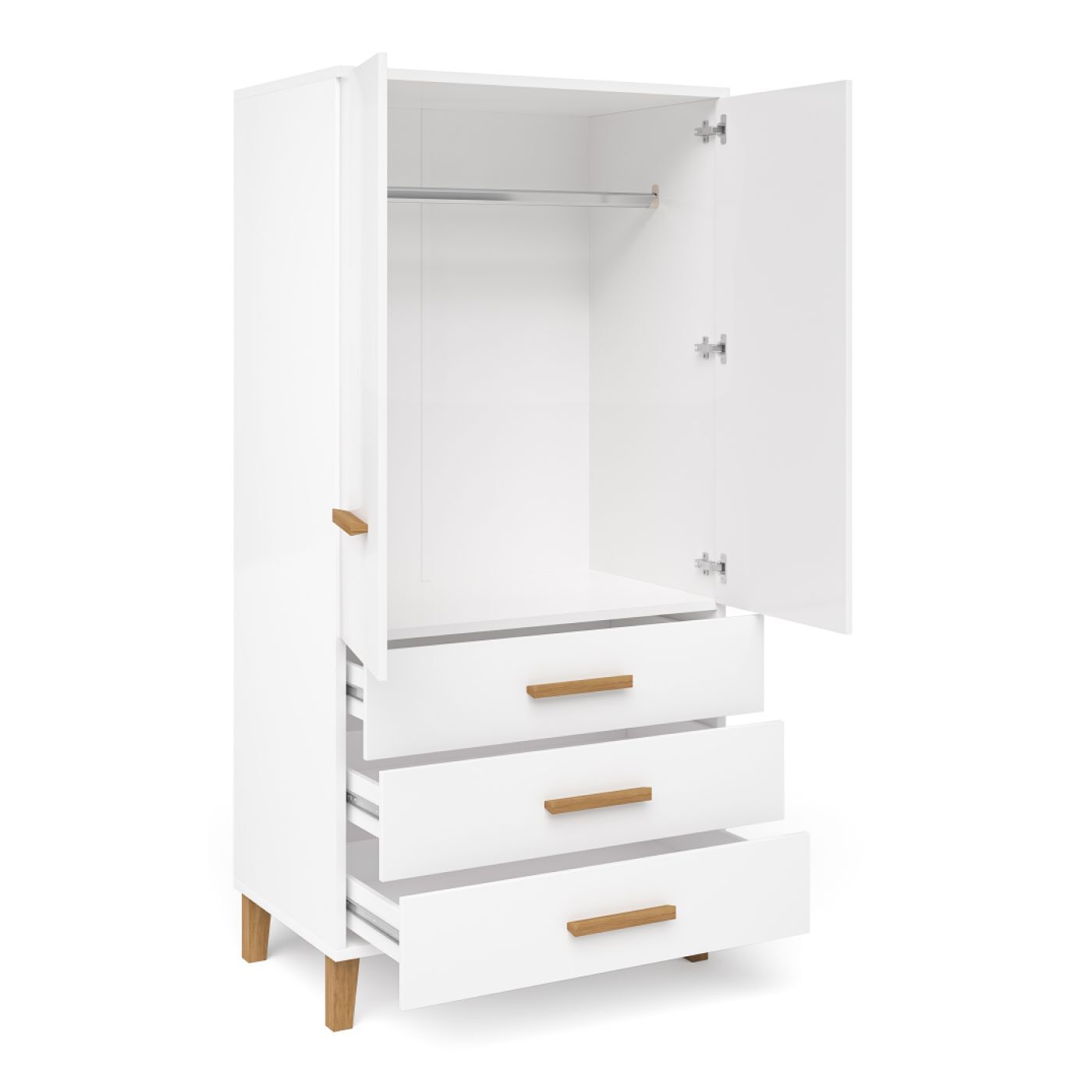 Шкаф для одежды с двумя дверями и тремя ящиками из коллекции — это совершенное сочетание функциональности и элегантности для вашей детской комнаты. Продуманный дизайн и удобная система хранения делают этот шкаф идеальным решением для организации пространства.
