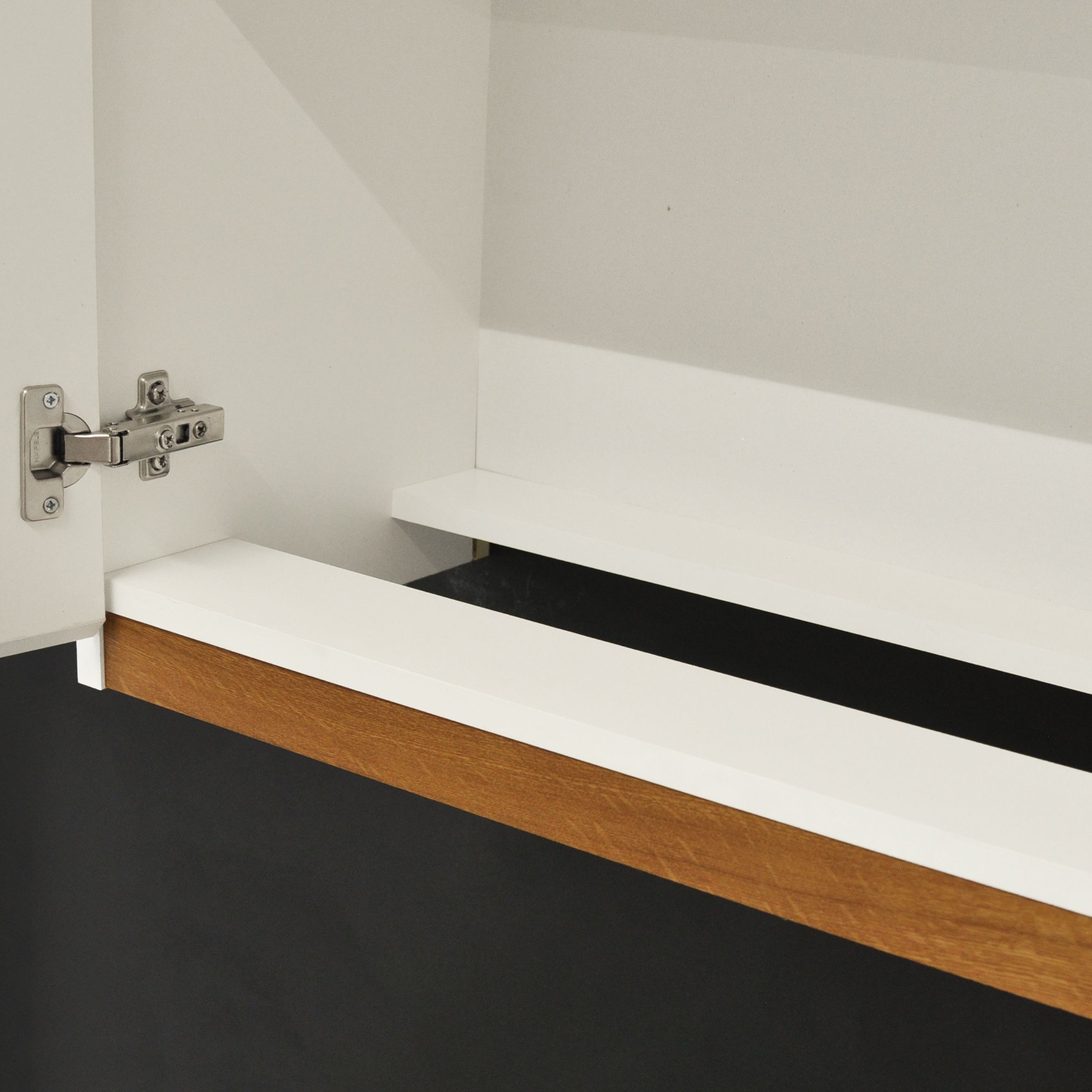 Прочная корпус - Стенки из прочного белого ЛДСП толщиной 22 мм выдерживает нагрузку в диапазоне 30-40 кг, обеспечивая прочность и долговечность при использовании.