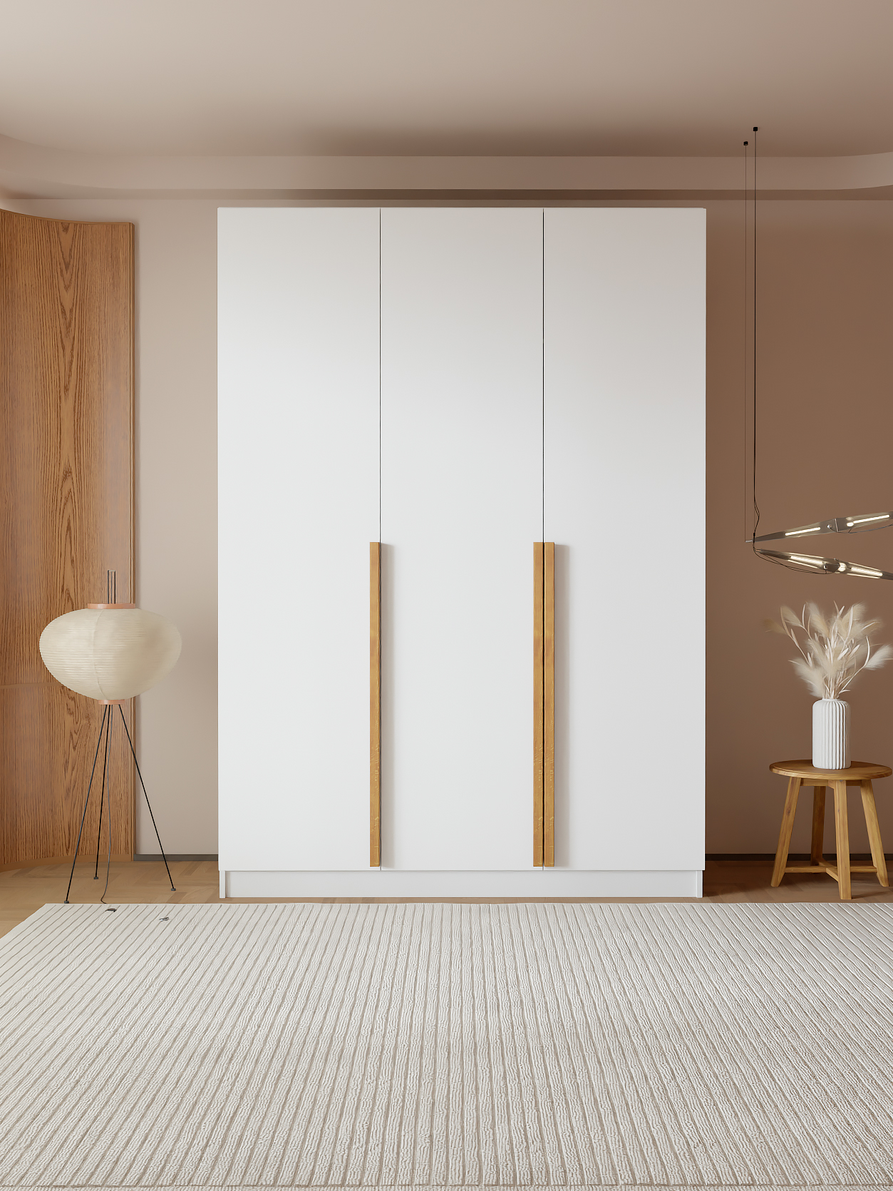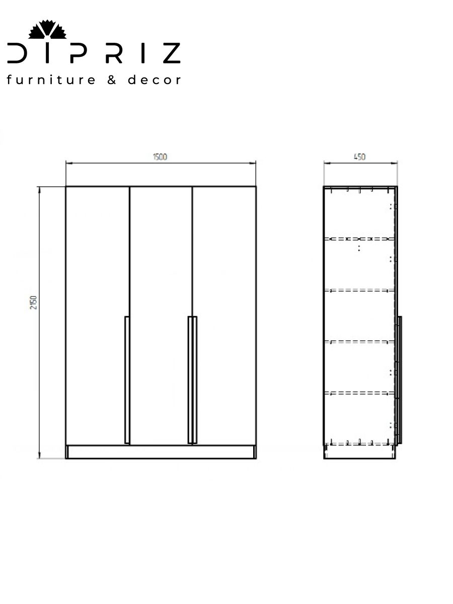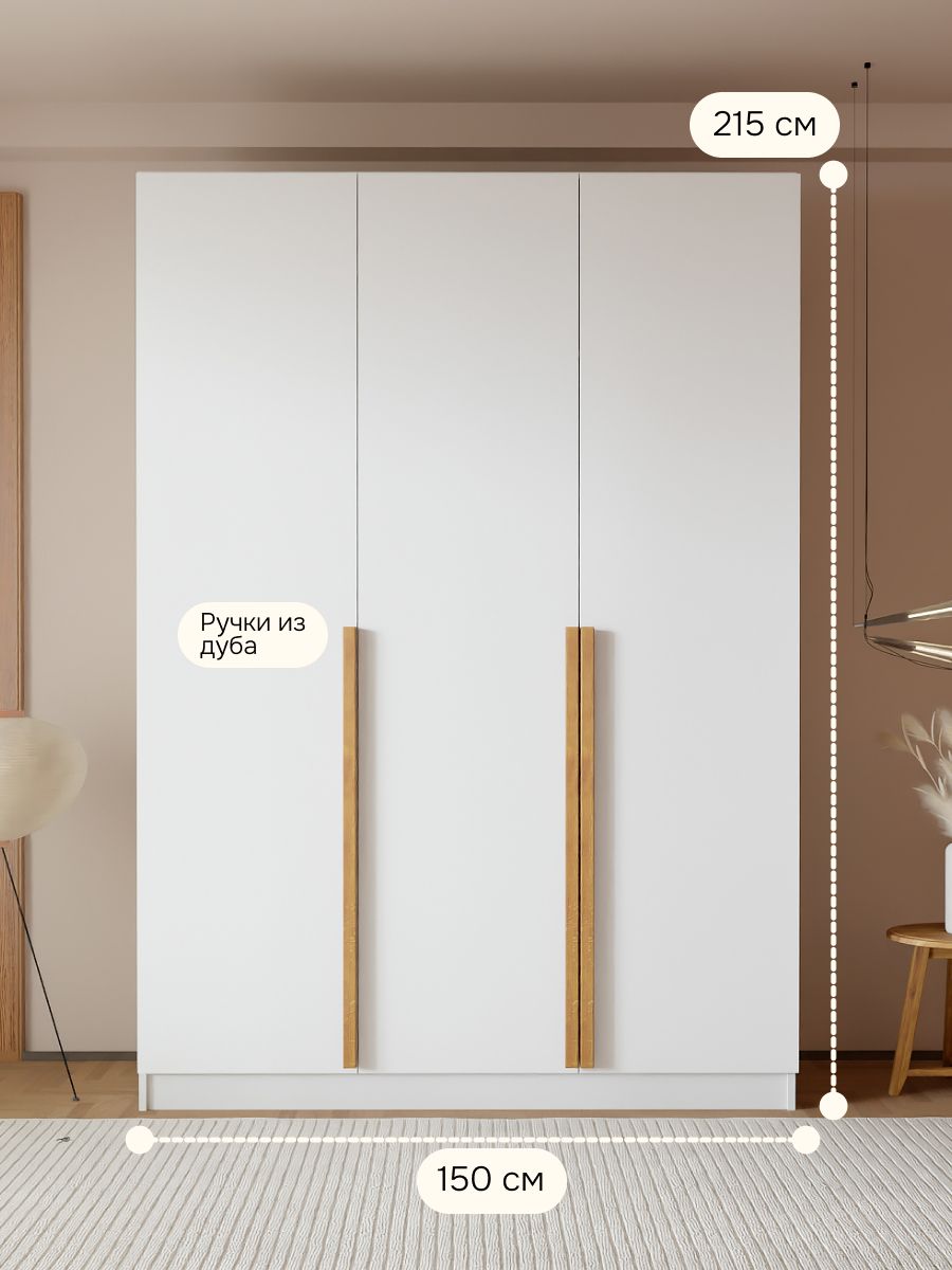 Корпус выполнен из прочного ЛДСП, что гарантирует надежность и долговечность, а дубовые ручки придают мебели естественный акцент и удобство в использовании. Благодаря габаритам 45 × 150 × 215 см шкаф остается вместительным, но при этом не занимает слишком много места, что делает его практичным решением для любого интерьера. Современный дизайн и натуральные материалы позволяют ему гармонично вписываться в разные стили оформления, создавая комфортную и организованную обстановку.