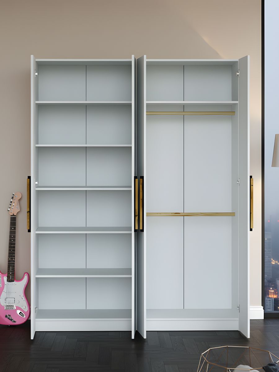 Индивидуальная конфигурация: Благодаря системе перестановки, вы можете менять расположение полок и штанг в разных отсеках, подстраивая шкаф под свои нужды.