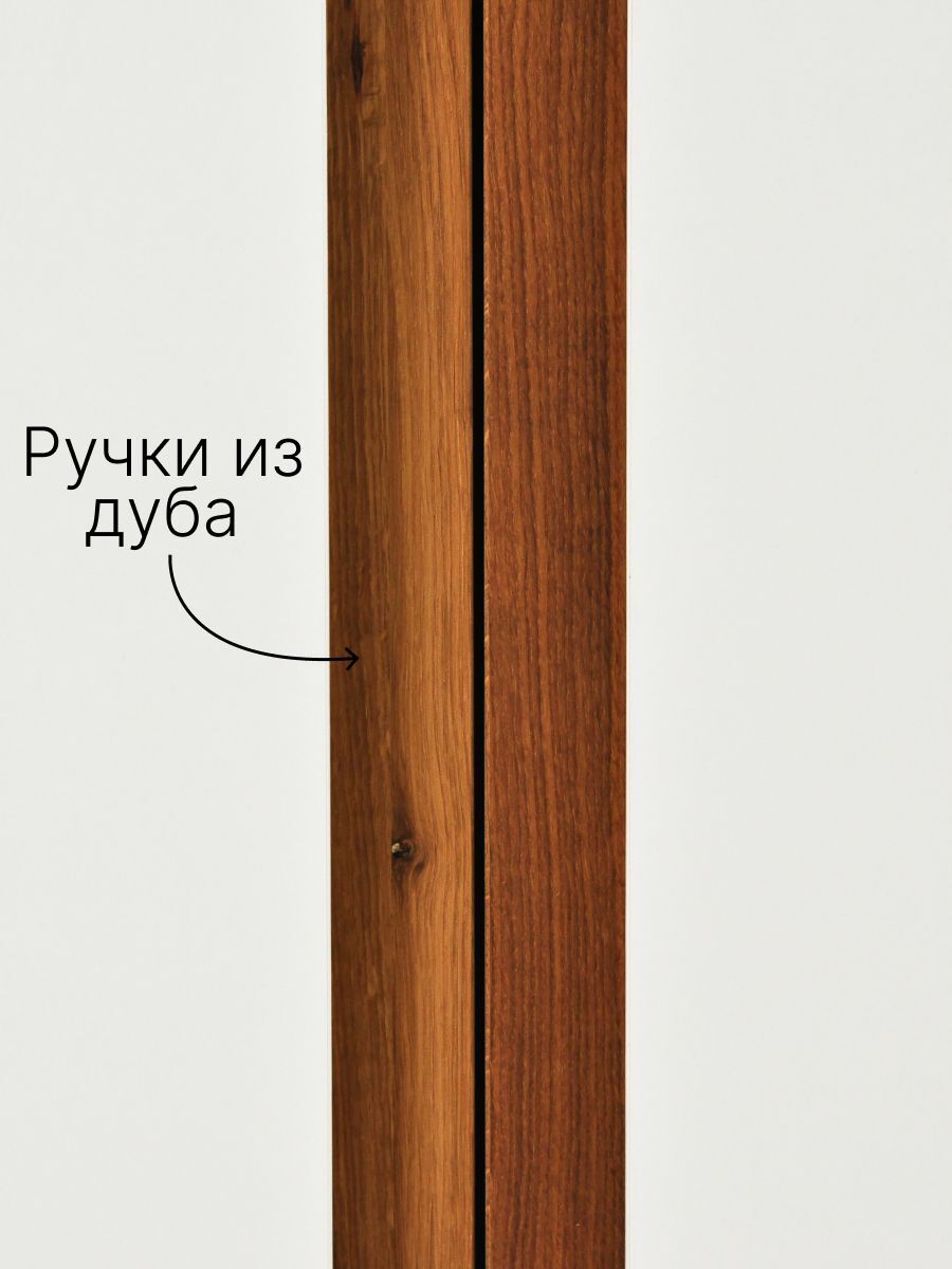 Просторный и функциональный шкаф станет надёжным решением для хранения одежды, белья и других вещей. Выполнен из качественного ЛДСП, устойчивого к царапинам и истиранию, а стильные ручки из массива дуба добавляют изделию тёплый акцент и подчёркивают природную эстетику.