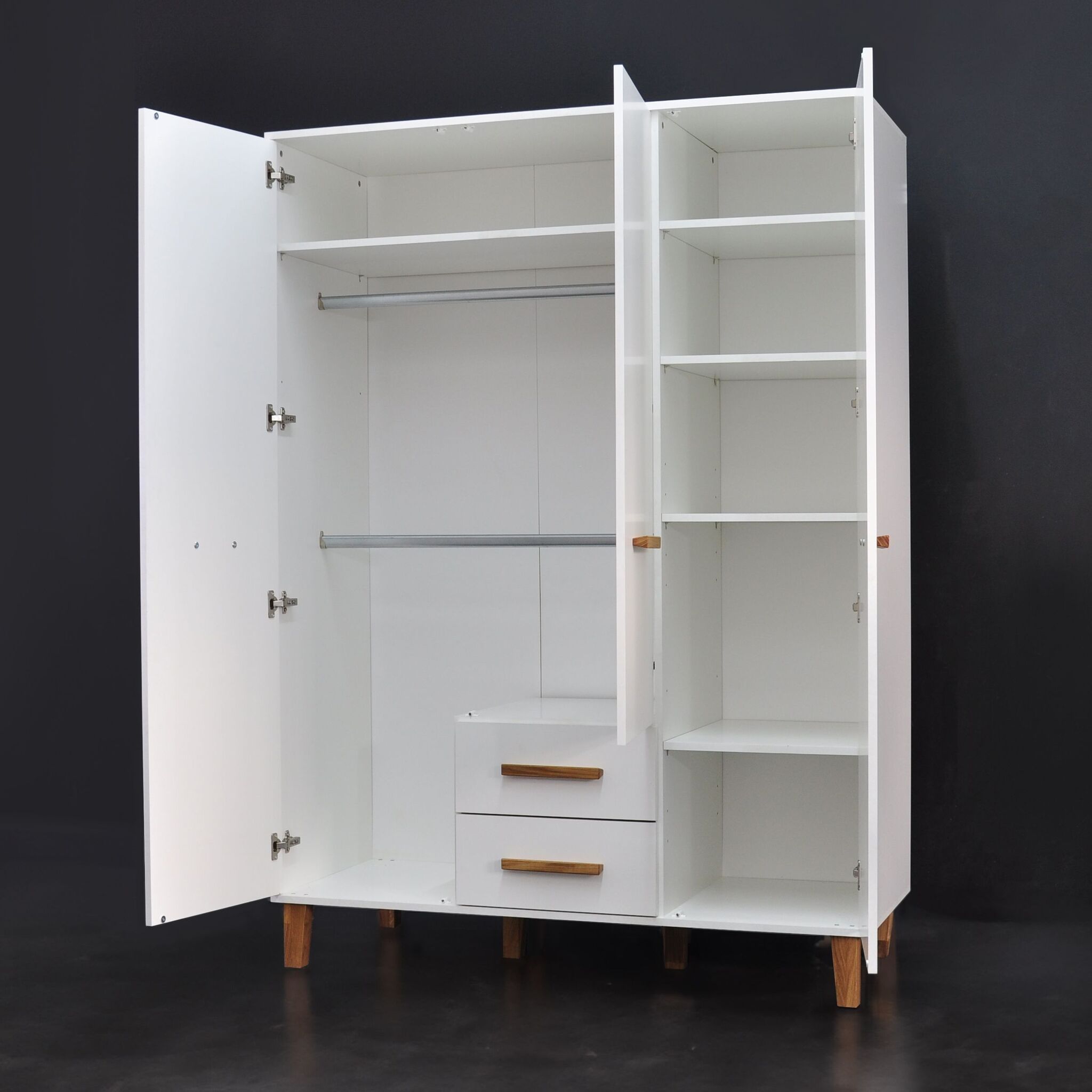 В итоге, шкаф с тремя дверями и двумя ящиками из коллекции — это практичное и стильное решение для хранения в детской комнате. Его гибкая система внутреннего хранения, сочетание материалов и внимание к деталям делают его незаменимой частью вашего интерьера, обеспечивая удобство и порядок на протяжении многих лет.