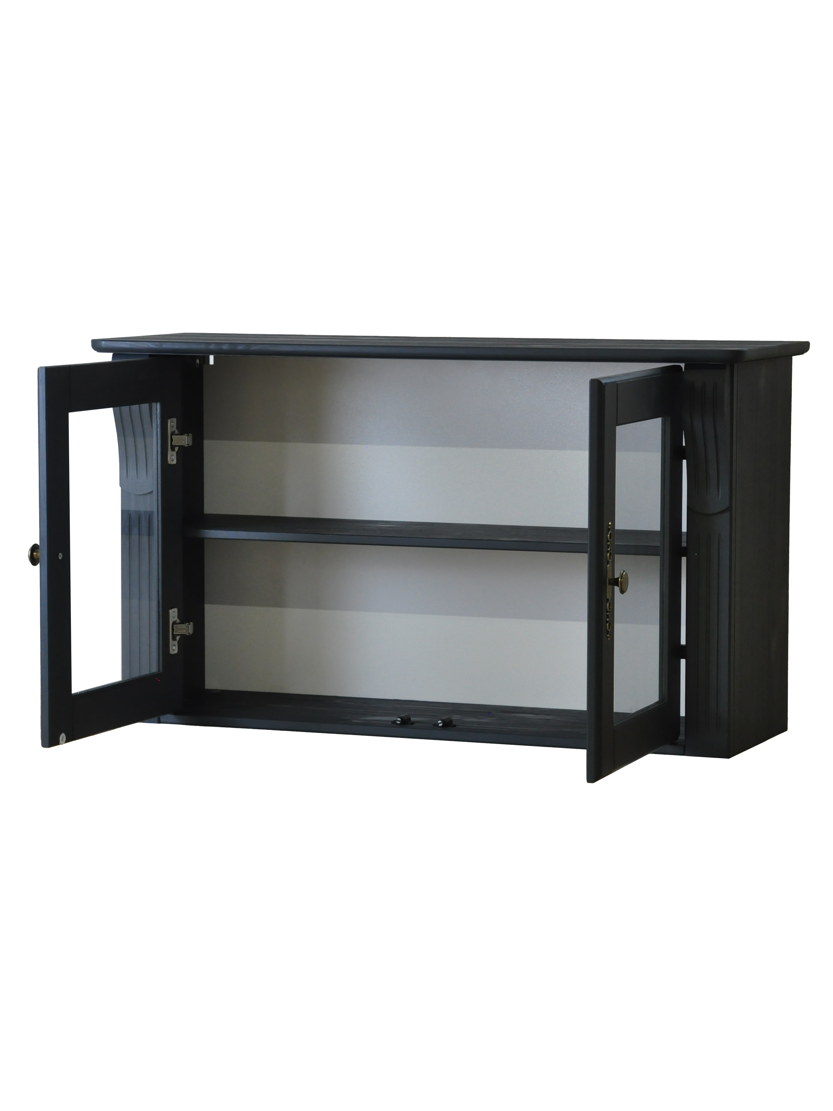 - две дверцы со стеклом – добавляет легкости и позволяет красиво расставить декор