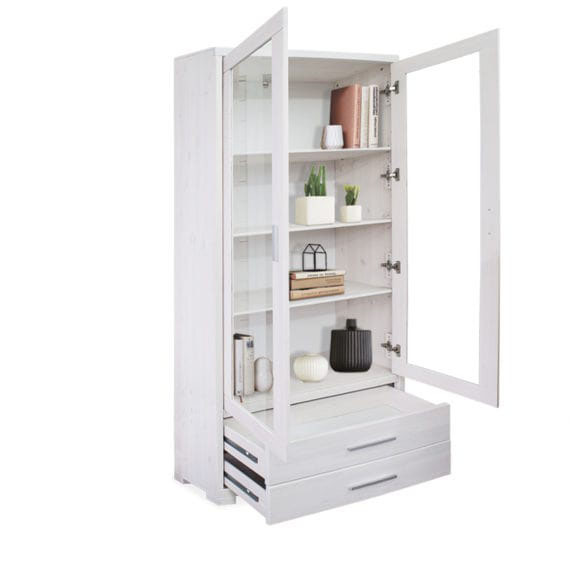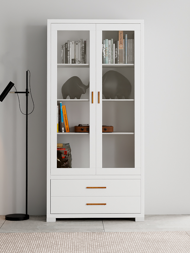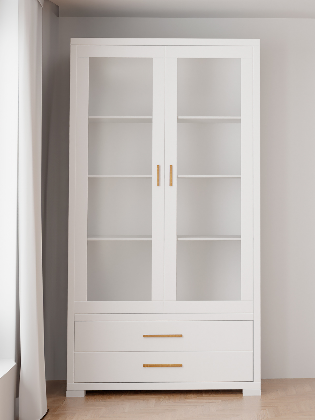 Шкаф-витрина белый с 2 дверями и 2 ящиками
