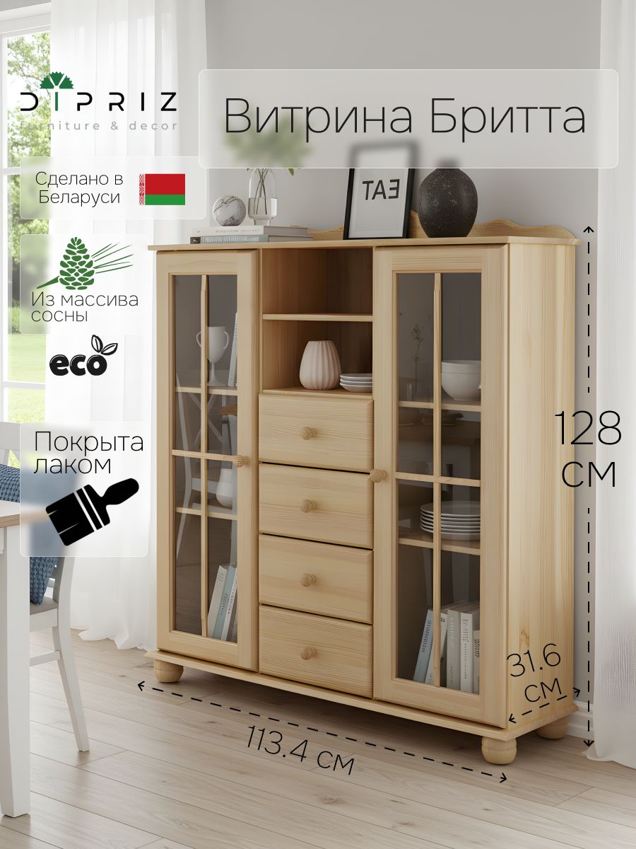 Шкаф-витрина Бритта из массива сосны: идеальное сочетание красоты и функциональности!