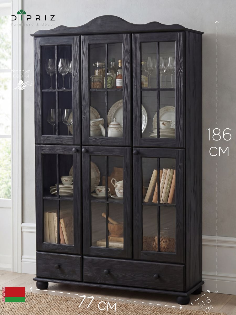 Шкаф с витриной Бритта изготовлена из натурального дерева сосны от белорусского производителя мебели "Диприз". Шкаф с витриной отличается элегантным современным дизайном, который легко сочетается с любым стилем и декором! Основные характеристики:
