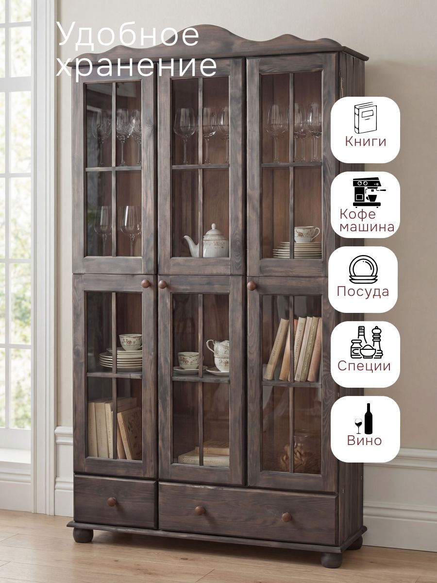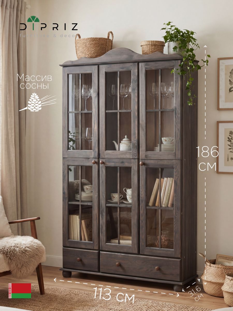 Шкаф с витриной Бритта изготовлена из натурального дерева сосны от белорусского производителя мебели "Диприз". Шкаф с витриной отличается элегантным современным дизайном, который легко сочетается с любым стилем и декором! Основные характеристики: