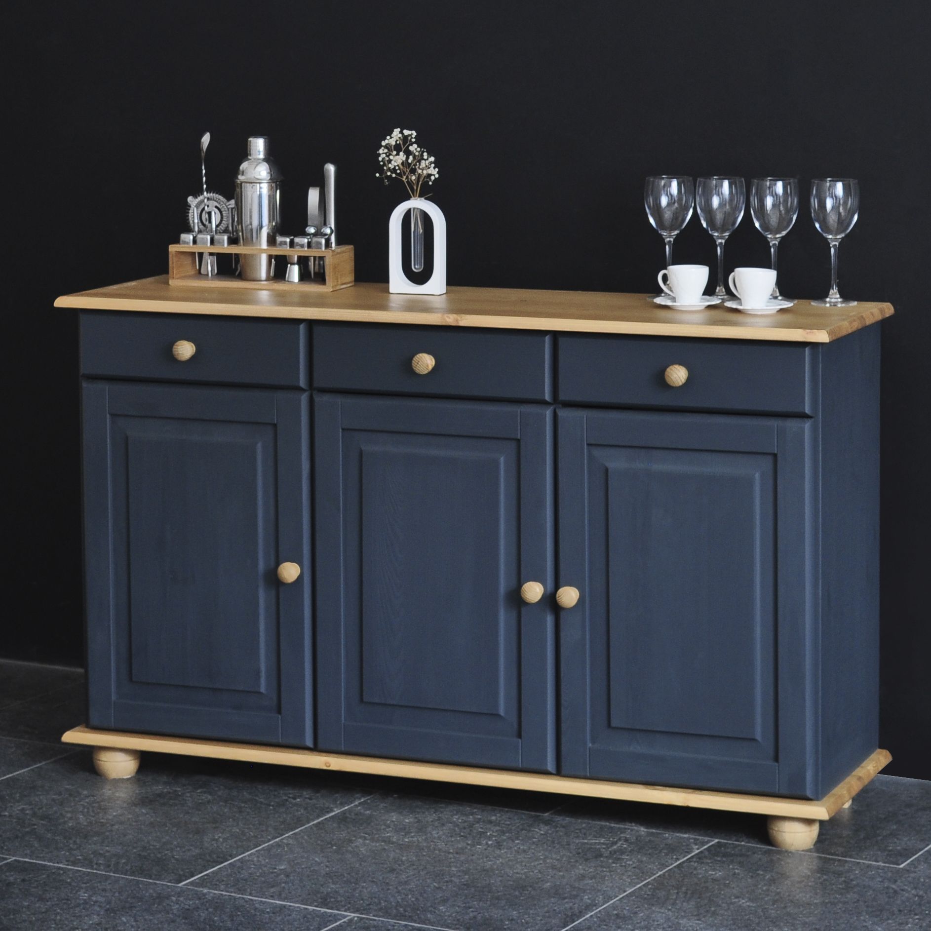 Тумба Лена трехдверная из сосны (серый воск/антик) - 1 шт