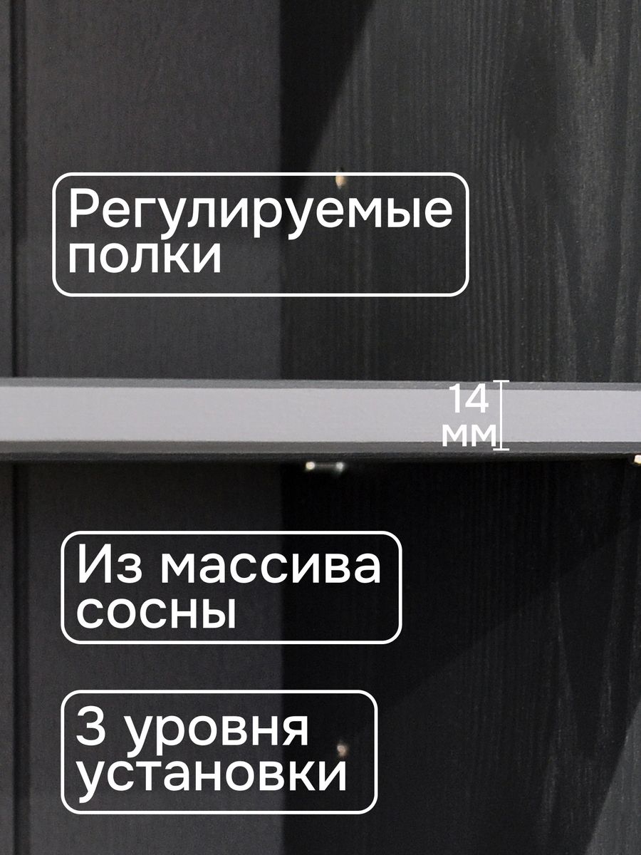 Полки шкафа можно легко переставлять на три уровня высоты, что позволяет адаптировать внутреннее пространство под любые нужды. Вы сможете организовать пространство так, как вам удобно.