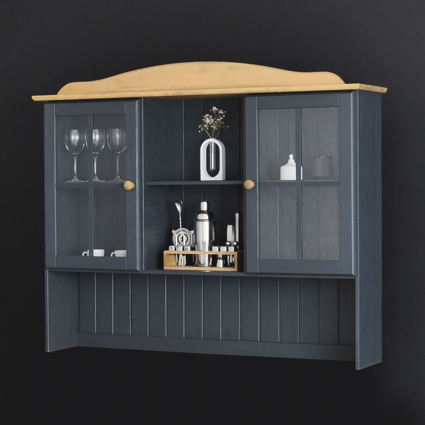 Шкаф-витрина "Лена" изготовлен из массива сосны белорусской компанией "Диприз". Корпус и фасады выполнены из массива сосны, а задняя стенка и дно ящика - из белого ДВП. Мы заботимся о вашем здоровье и окружающей среде, поэтому используем только экологически чистые материалы. Витрина тщательно отшлифована и покрыта серым укрывистым воском на водной основе, который защищает дерево от негативного внешнего воздействия. Серый воск, в отличие от краски, не скрывает уникальную текстуру дерева, а немного маскирует, благодаря чему можно наслаждаться частичкой природы в вашем доме. Антик - натуральное покрытие элементов бейцем и прозрачным лаком.