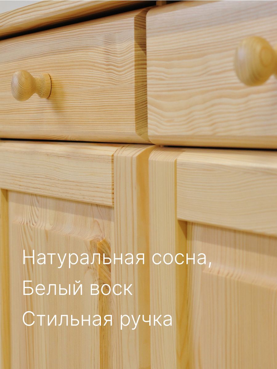 Шкаф-витрина ""Лена"" изготовлен из массива сосны белорусской компанией ""Диприз"". Корпус и фасады выполнены из массива сосны, а задняя стенка и дно ящика - из белого ДВП. Мы заботимся о вашем здоровье и окружающей среде, поэтому используем только экологически чистые материалы. Витрина тщательно отшлифована и готова для нанесения любого покрытия или краски для дерева. Вы можете легко адаптировать её под ваш индивидуальный стиль и цветовую гамму интерьера.