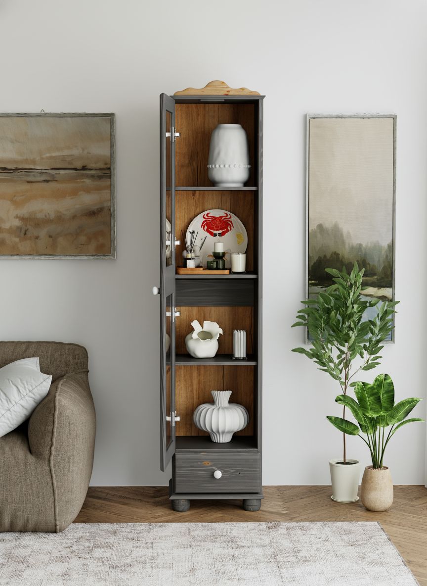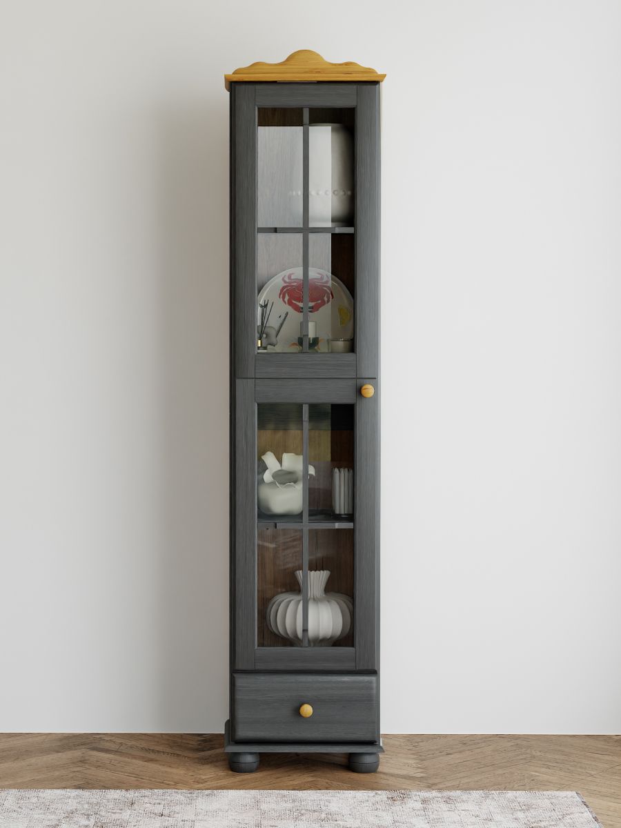Серый шкаф-витрина «Бритта» от белорусского производителя мебели Диприз — это стильное и функциональное решение для вашего интерьера. Изготовленный из натурального дерева сосны, он отличается элегантным современным дизайном, который легко впишется в любой стиль и декор.