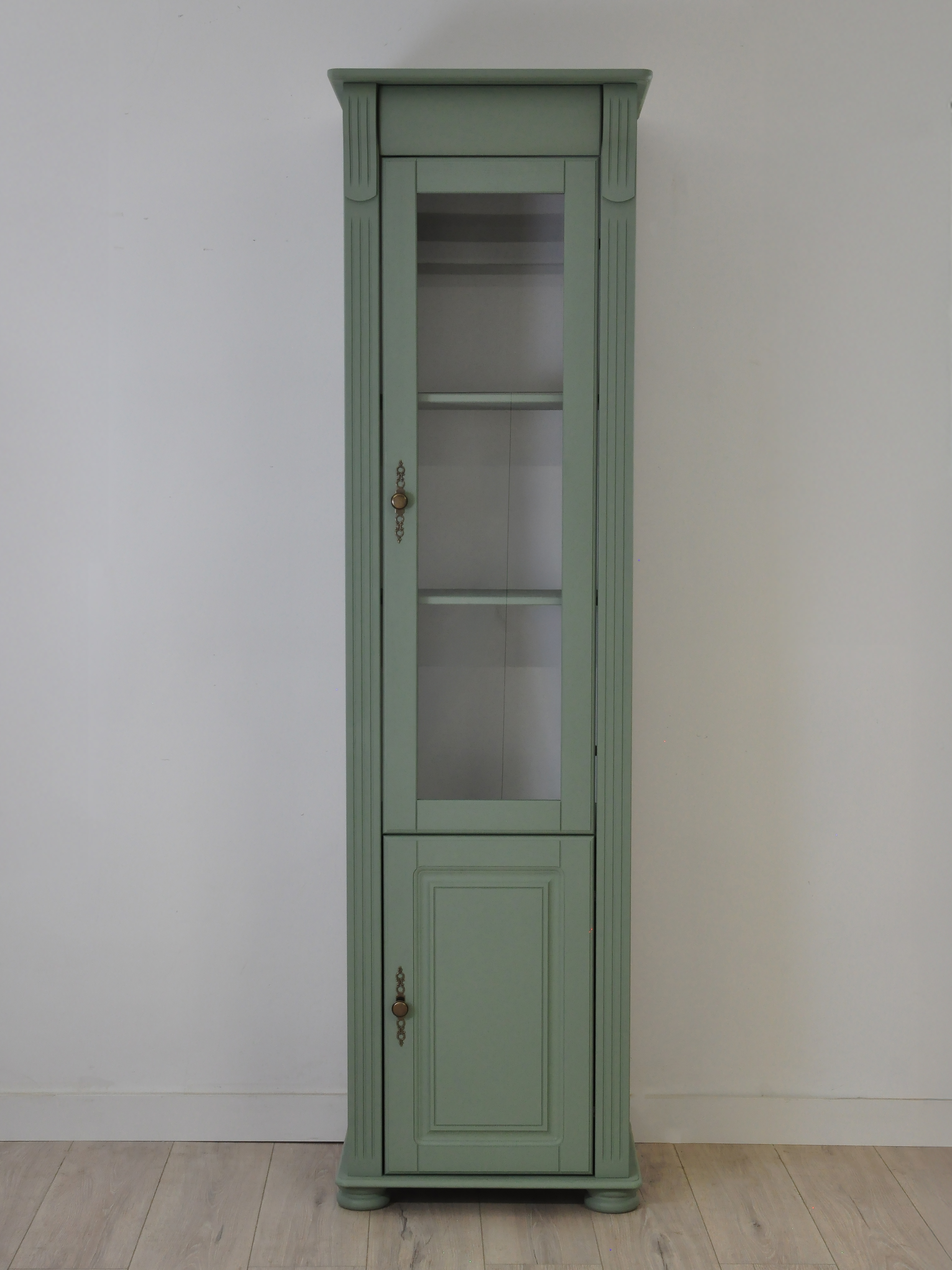 Белый цвет шкафа привносит свет и свежесть, делая его отличным выбором для использования в комнате любой цветовой палитры. Если вы ищете практичный и стильный шкаф распашной, который можно использовать в качестве шкафа-витрины, шкафа для книг или даже узкого шкафа в ванную комнату, то этот вариант станет для вас настоящей находкой. Благодаря своему универсальному дизайну, этот шкаф можно легко адаптировать под любые потребности — будь то хранение полотенец в ванной комнате или демонстрация коллекций в гостиной. Стеклянные дверцы витрины создают эстетически приятный вид и позволяют легко найти нужный предмет.