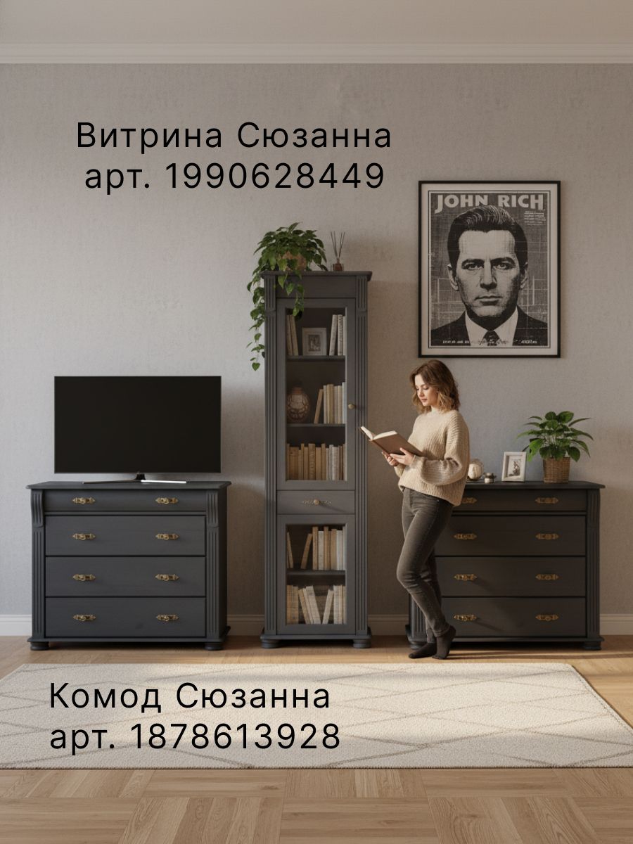 Витрина "Сюзанна" станет не только функциональным элементом вашего интерьера, но и его украшением. Натуральные материалы и качественная фурнитура гарантируют долгий срок службы и неизменную эстетику.