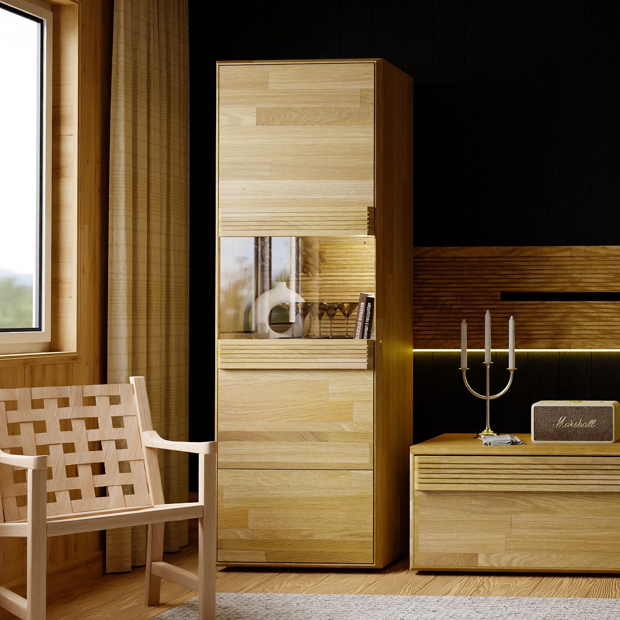 Каждое изделие серии "Михаэлла" оснащено подсветкой, которая придает вашей гостиной уют и атмосферу. Мягкое, рассеянное освещение подчеркивает красоту дерева и создает неповторимый эффект вечерней атмосферы.