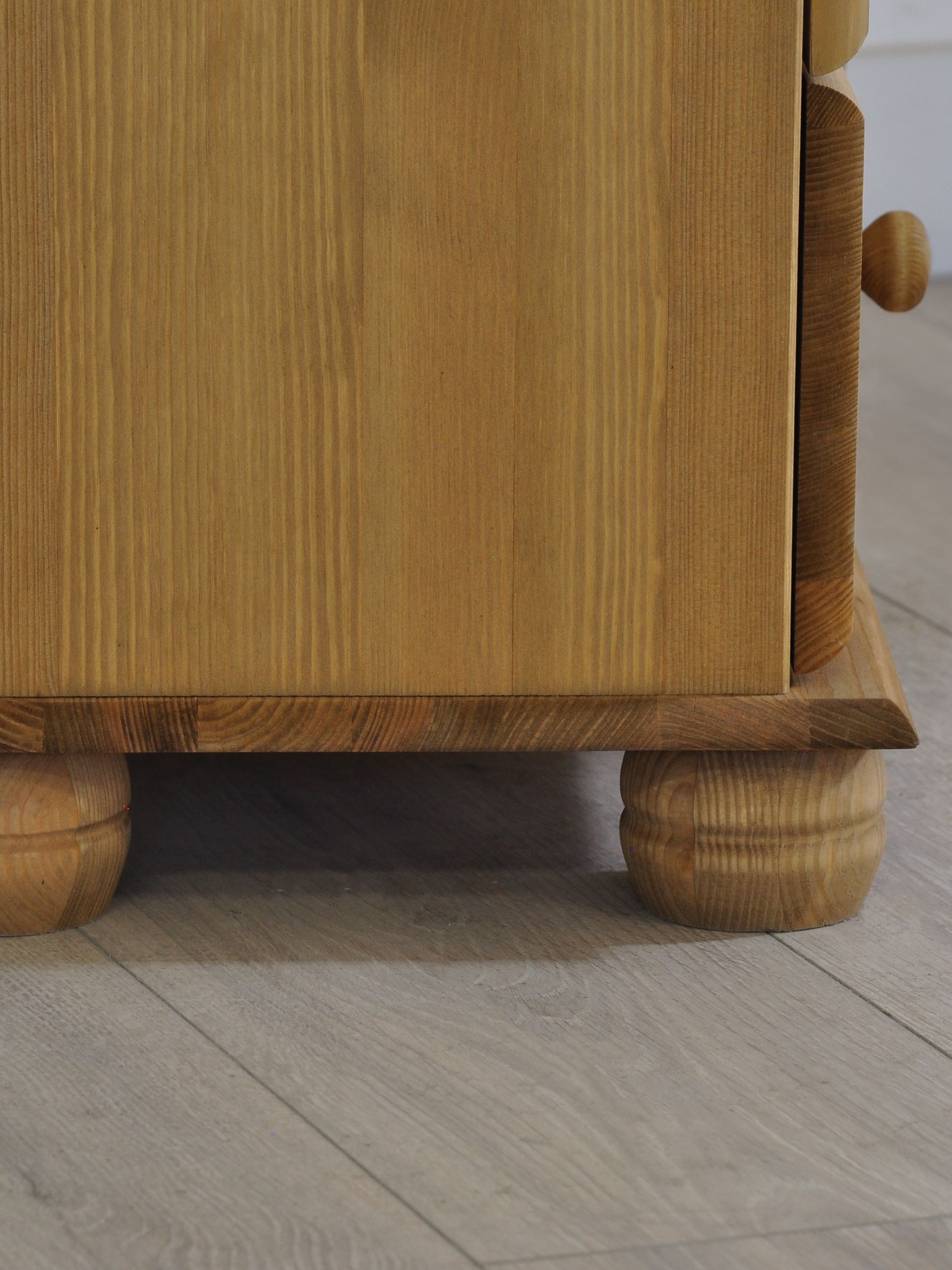 Материал задней стенки буфета витрины - ДВП золотой крафт, дно ящика - ДВП белое, остальное - сосна.