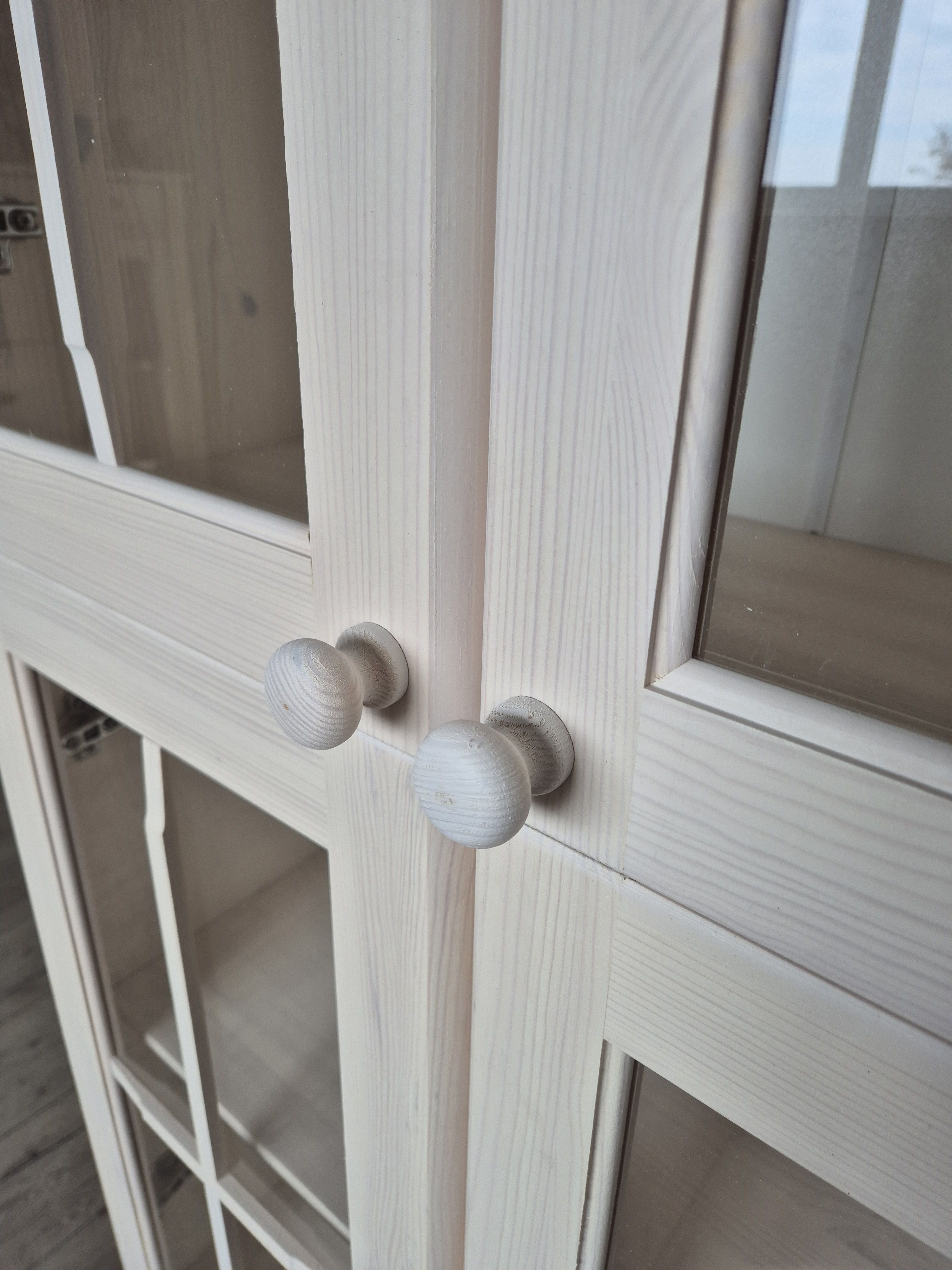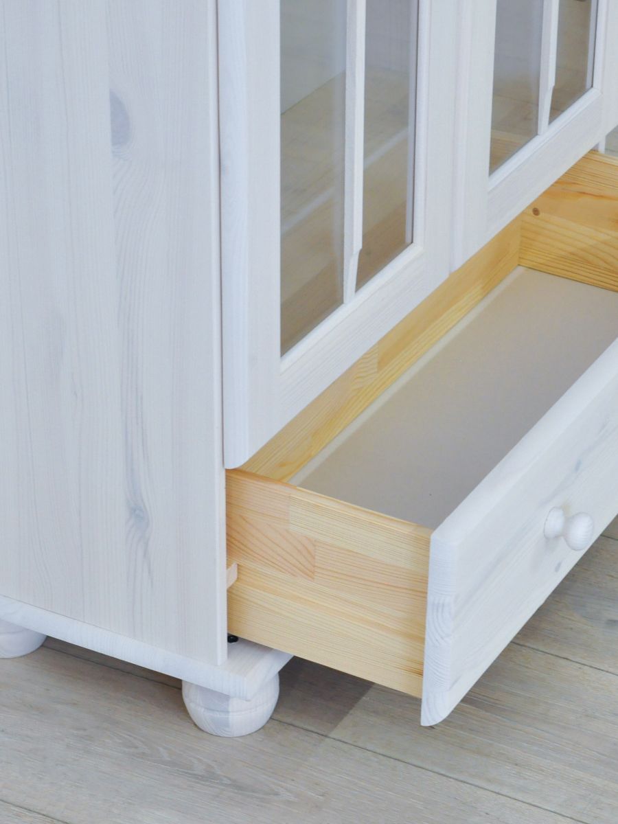Материал задней стенки и дно ящика серванта (витрины) – ДВП белое, все остальные детали – сосна.