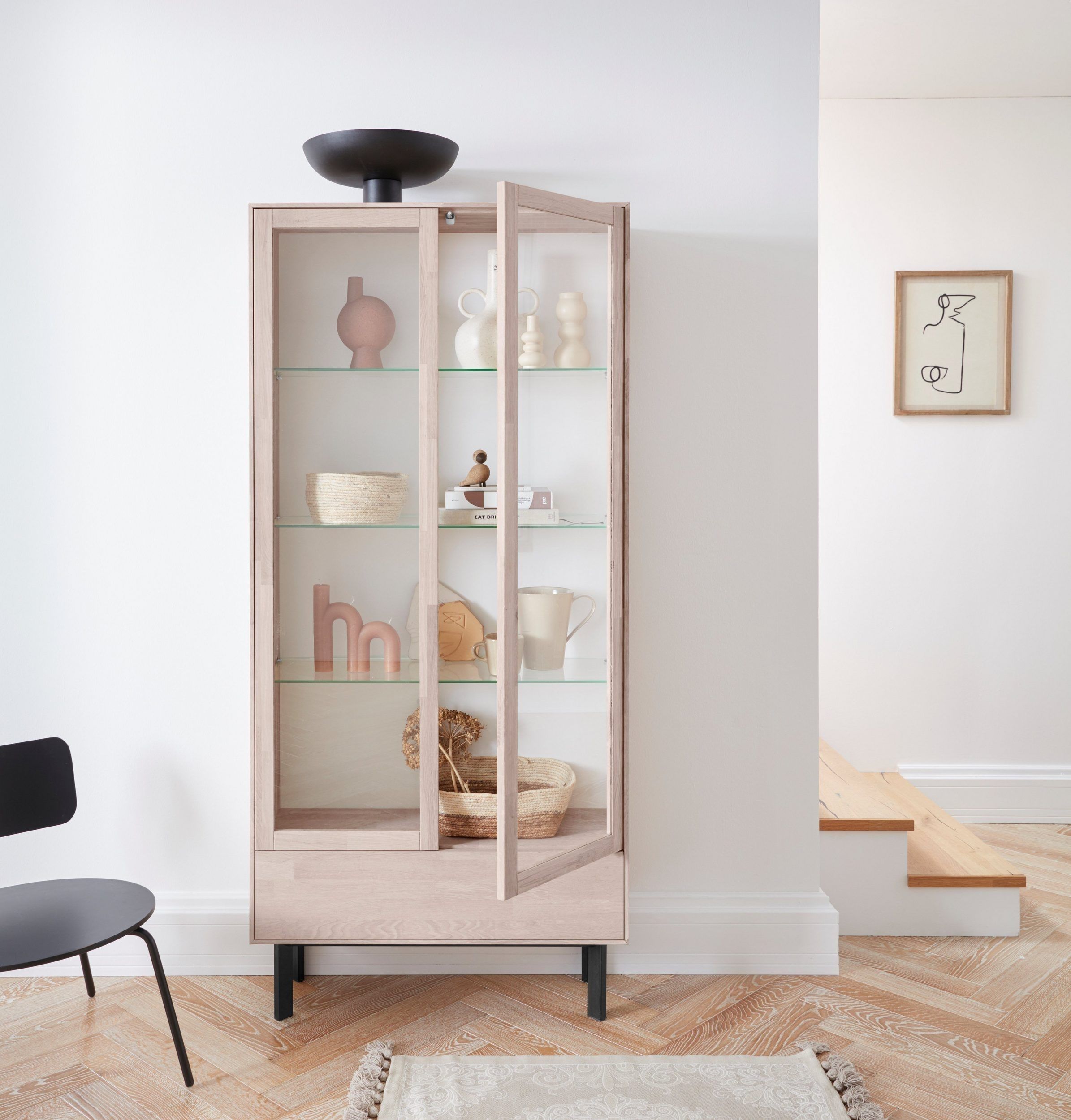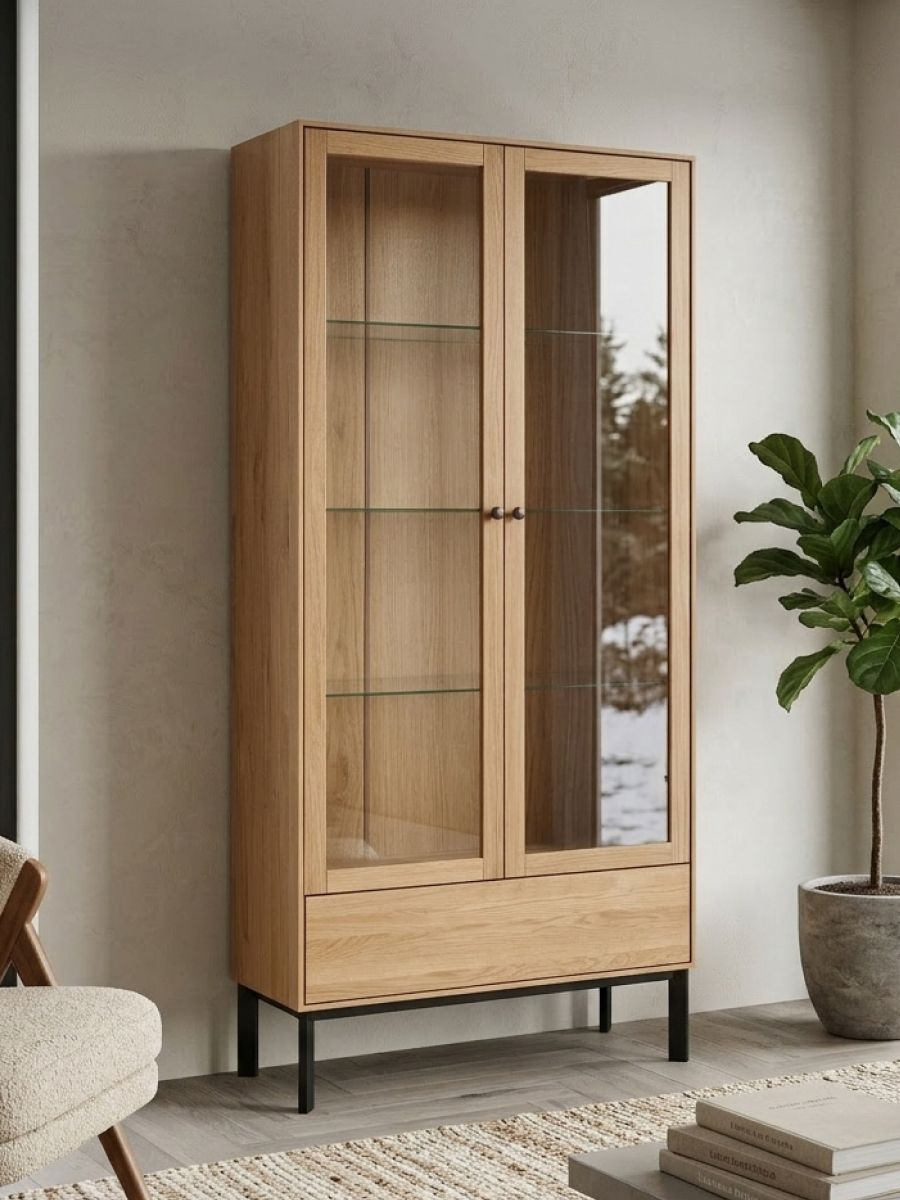 Шкаф витрина Виби из массива дуба- 1 шт