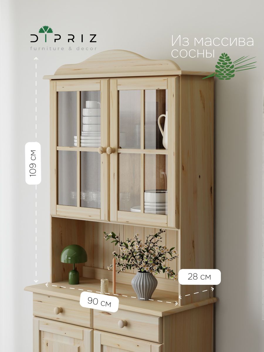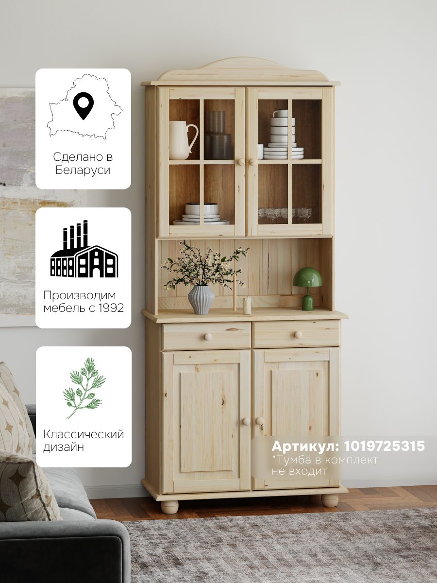 Шкаф Лена в комбинации с Тумбой Лена представляет собой модульный буфет, который прекрасно подойдет как для кухни, так и для столовой. Шкаф Лена выполнена из сосны от белорусского производителя "Диприз". Серия Лена представлена в 4-ех разных отделках - без отделки, лакированная, в белом воске и в сером воске с лакированной крышкой. Разнообразие расцветок позволит Вам выбрать буфет наиболее подходящий для Вашей цветовой гаммы. Шкаф органично впишется в интерьер любой кухни, станет незаменимым элементом мебели кухни, станет незаменимым элементом мебели для хранения посуды и других кухонных принадлежностей. В серии представлены напольные и настройки различной отделки и функционала, из которых можно спроектировать любой модульный гарнитур. Шкаф изготовлена корпус и фасады: сосна, заполнение фасадов: стекло. Шкаф Лена комплектуется с Тумбой Лена двухдверной, на тумбу устанавливается сверху и крепятся между собой сзади пластинами, отдельно НЕ ВЕШАЕТСЯ. Кухонные гарнитуры могут быть комплектом, состоящим из нескольких модулей или отдельными модулями. Главное преимущество модулей - это функциональность. Из нескольких модулей легко собрать гарнитур нужной конфигурации, который создаст уют и эстетику на вашей кухни.