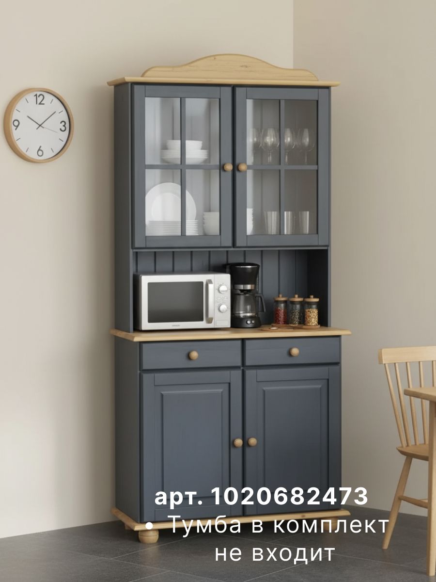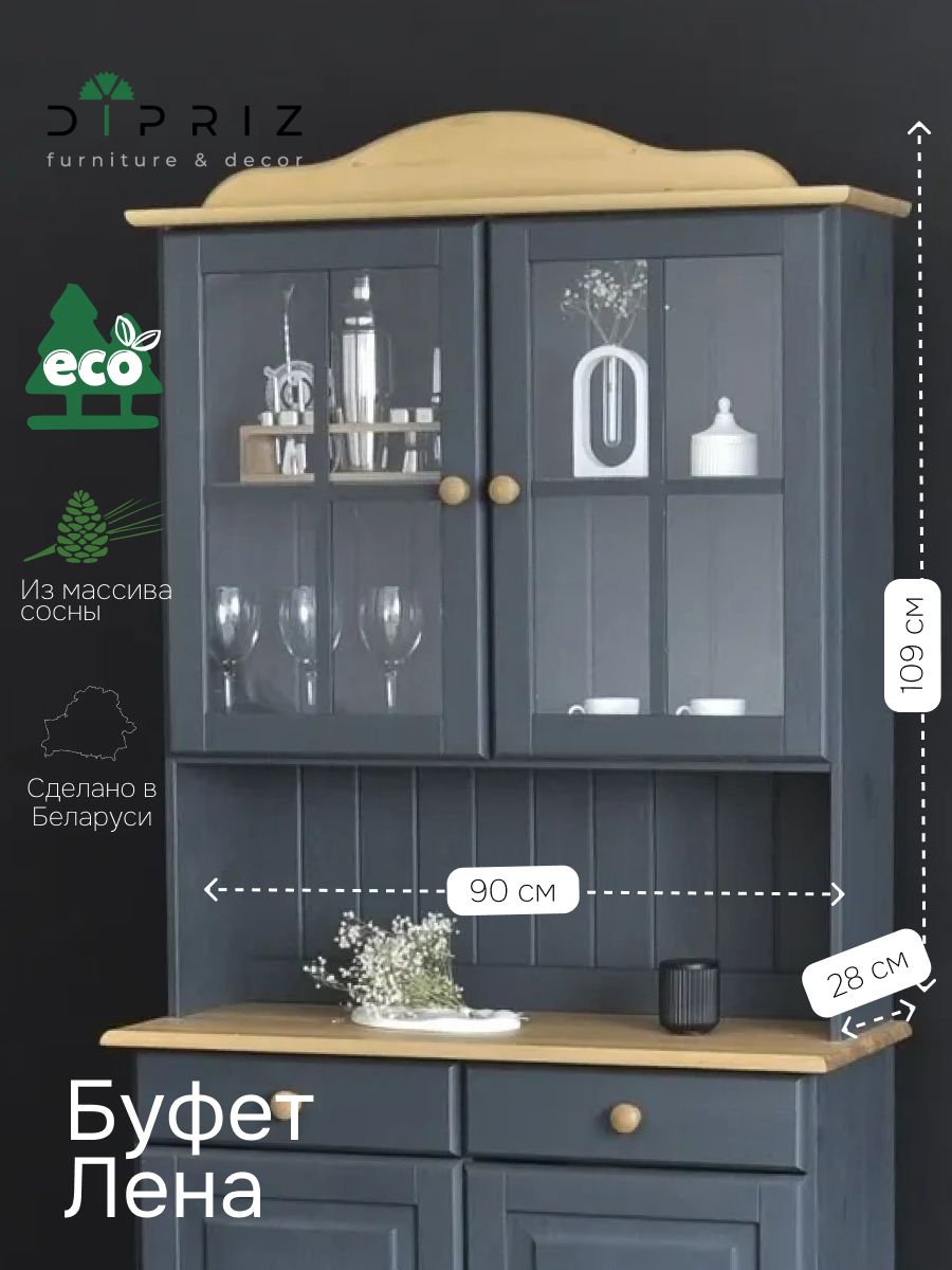 Шкаф Лена (арт. 1020720938) в комбинации с Тумбой Лена (арт. 1020682473) представляет собой стильный и функциональный кухонный буфет, который идеально подойдет для любого интерьера. Этот кухонный буфет навесной выполнен из сосны и изготовлен белорусским производителем мебели "Диприз".